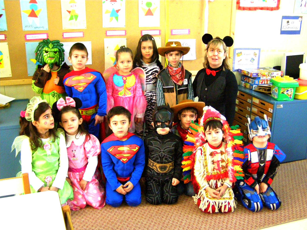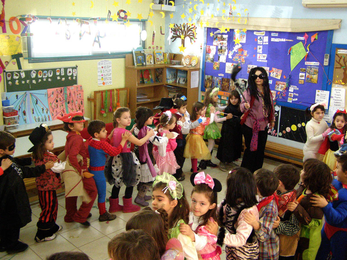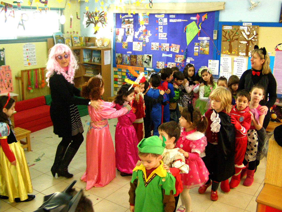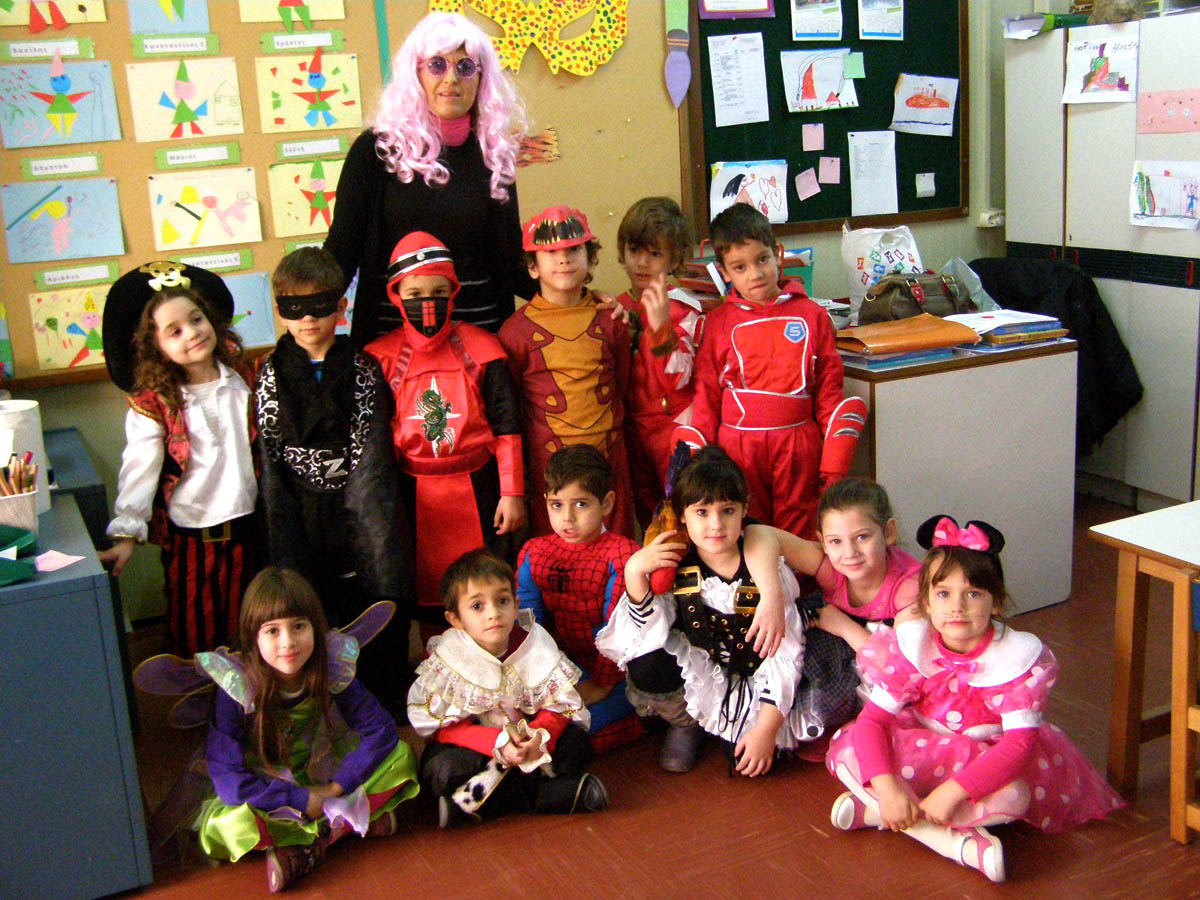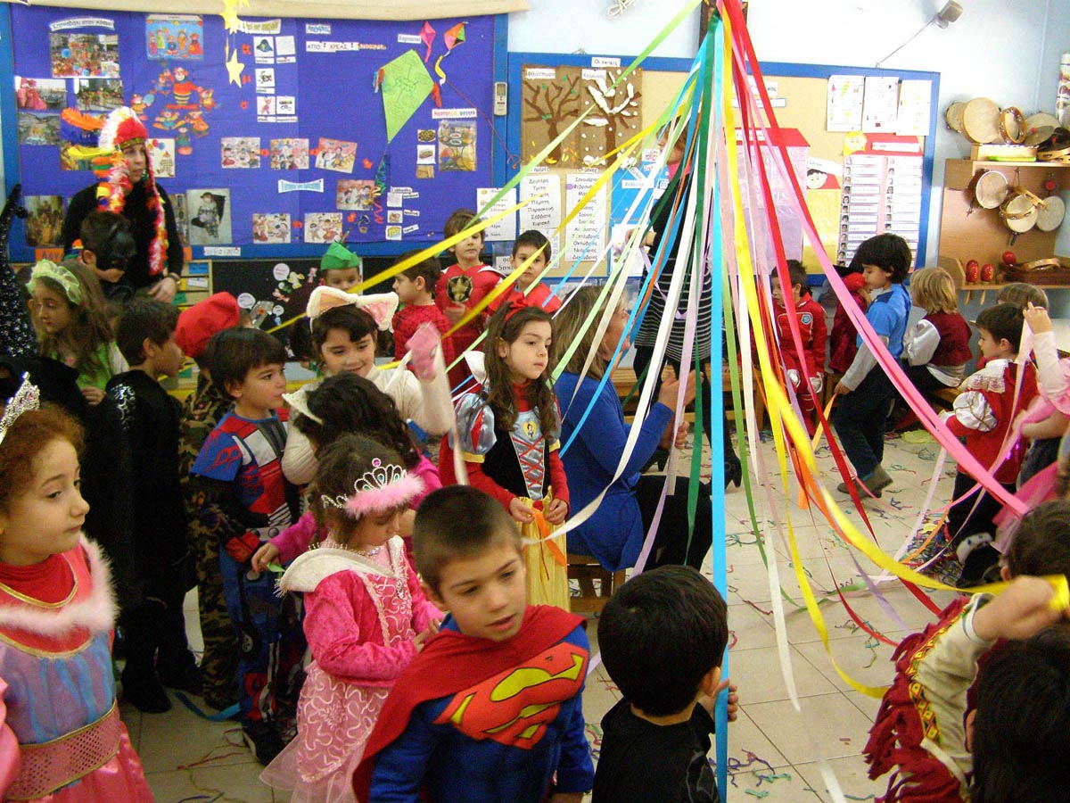 και διασκεδάσαμε παίζοντας αποκριάτικα παιχνίδια και χορεύοντας γύρω από το γαϊτανάκι μας .
