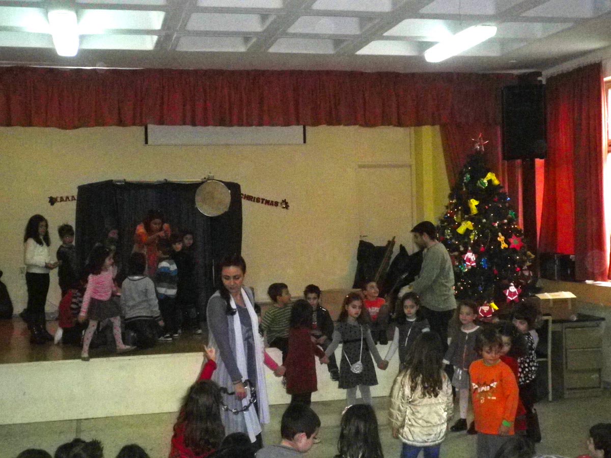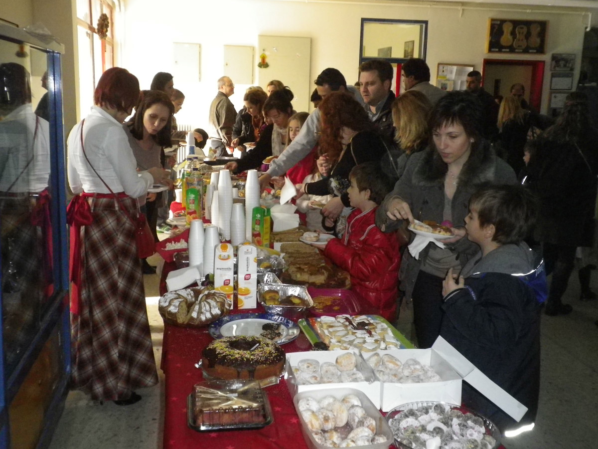 μπουφέ θεατρική παράσταση και 'Αγιο Βασίλη φυσικά φορτωμένο με δώρα.