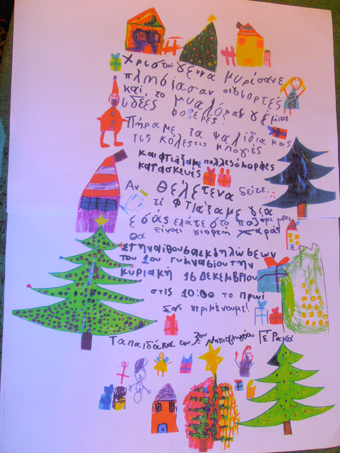 Ήρθε η ώρα για να καλέσουμε τους γονείς μας στη Χριστουγεννιάτικη εκδήλωση μας που θα έχει παζάρι,