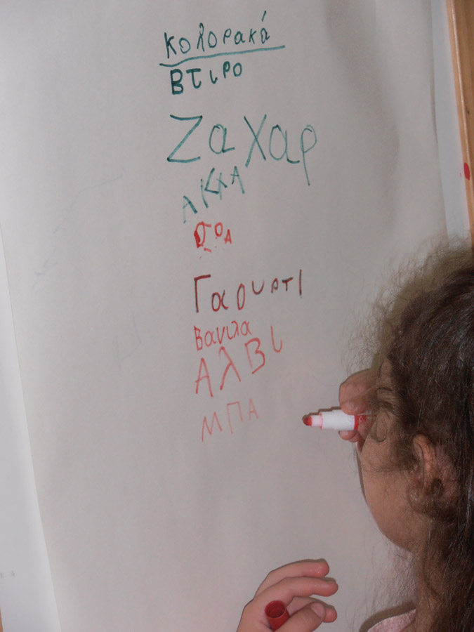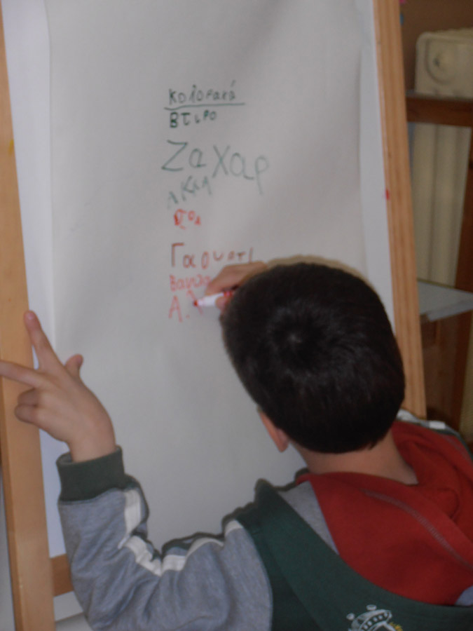και γράφαμε όλα τα υλικά ένα ένα όπως τα έβαζε ο μπαμπάς στο μηχάνημα