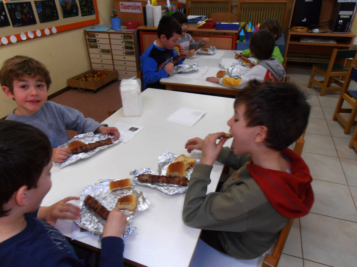 Ο Σύλλογος Γονέων μας κέρασε σουβλάκι για να τσικνίσουμε κι εμείς οι μικροί και να χαρούμε την Αποκριά.