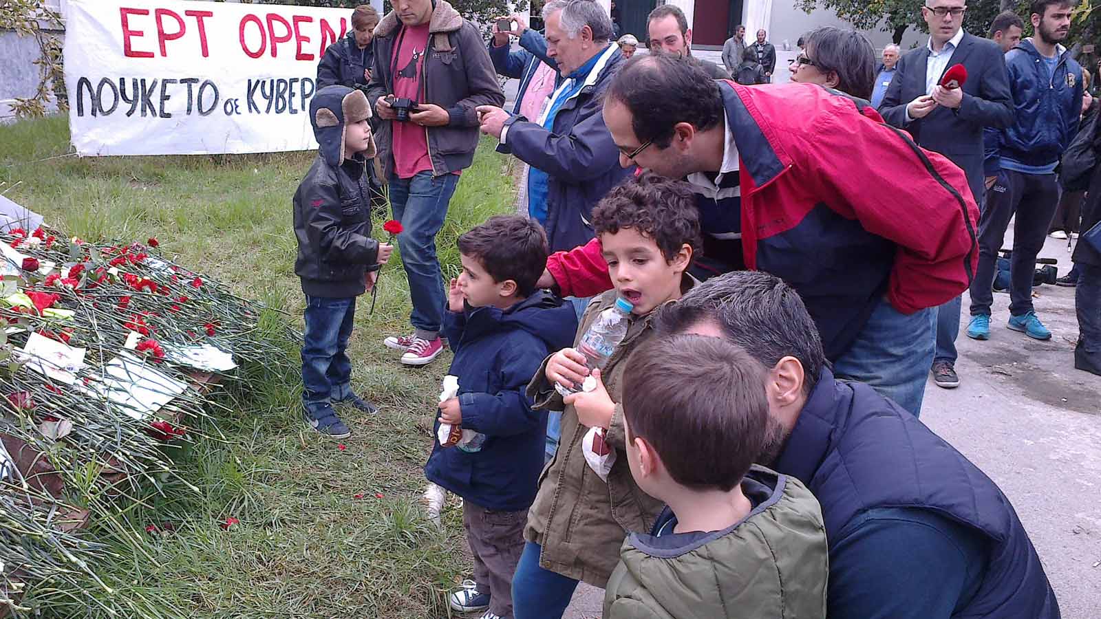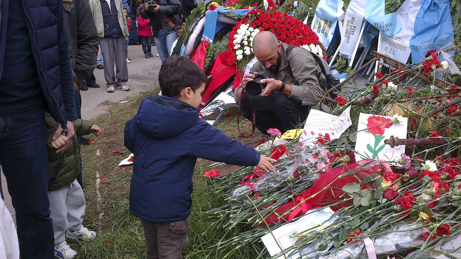 για να αφήσει ένα λουλούδι στους φοιτητές που χάθηκαν εκείνη τη νύχτα και βγήκε φωτογραφία.