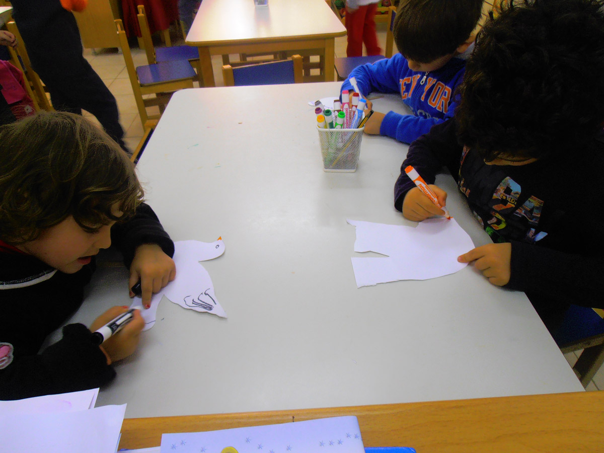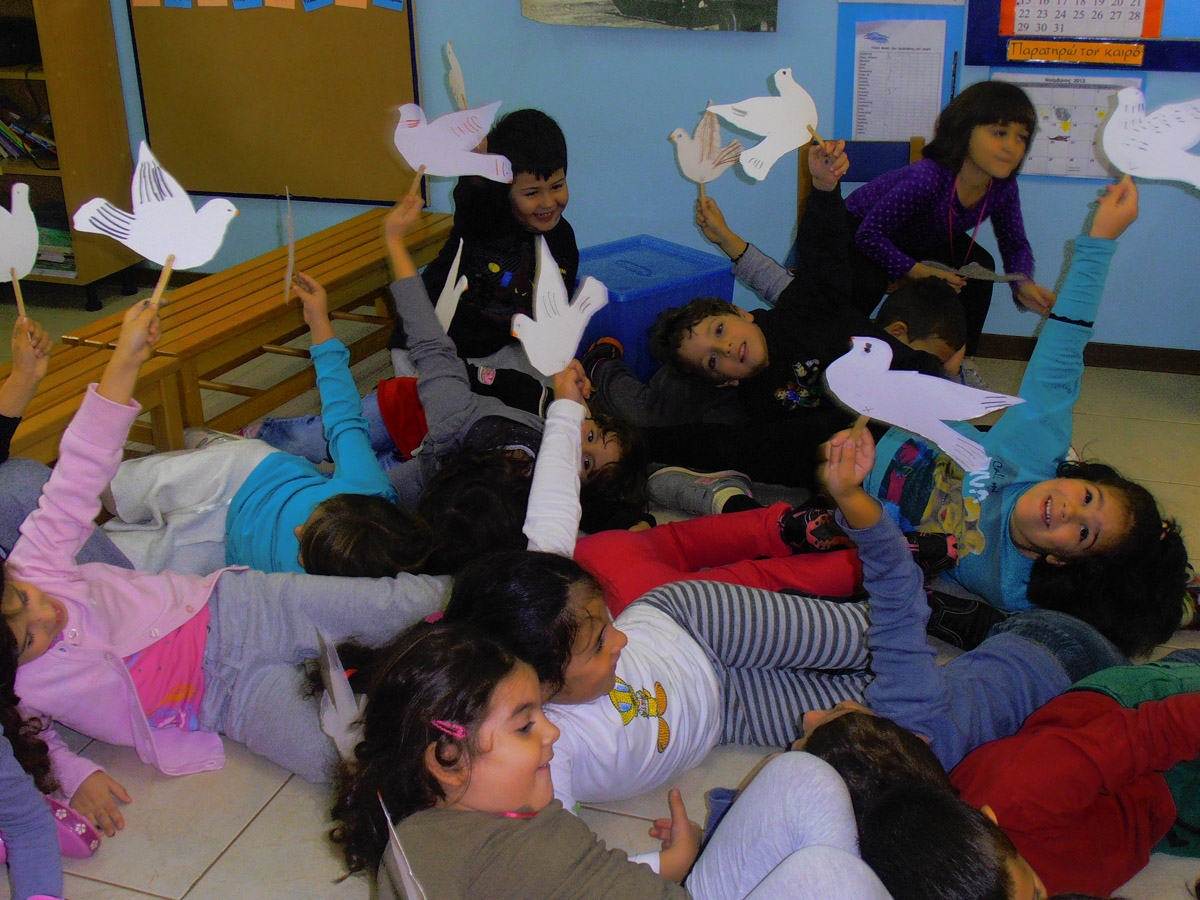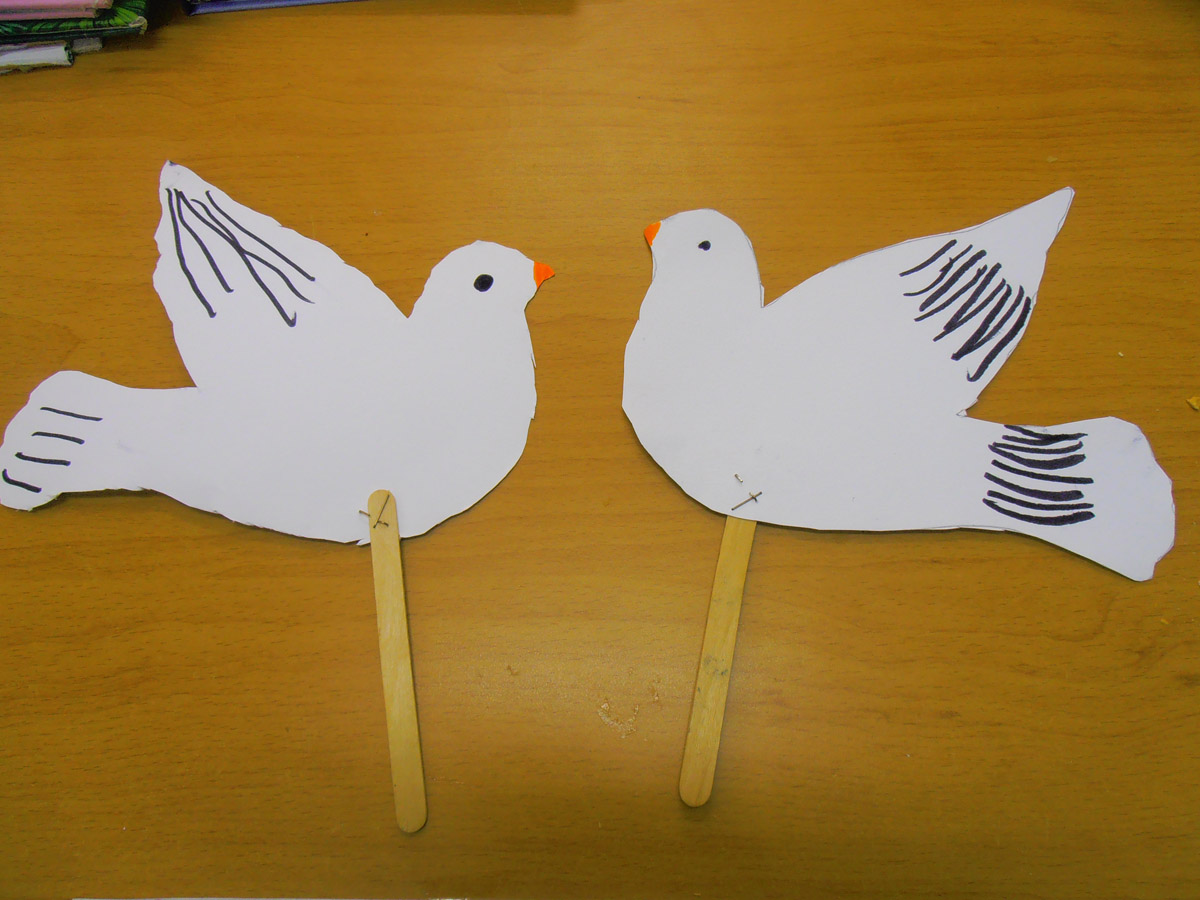 Σε κάποια τραπέζια δουλεύουμε ατομικά φτιάχνοντας το περιστέρι της ειρήνης