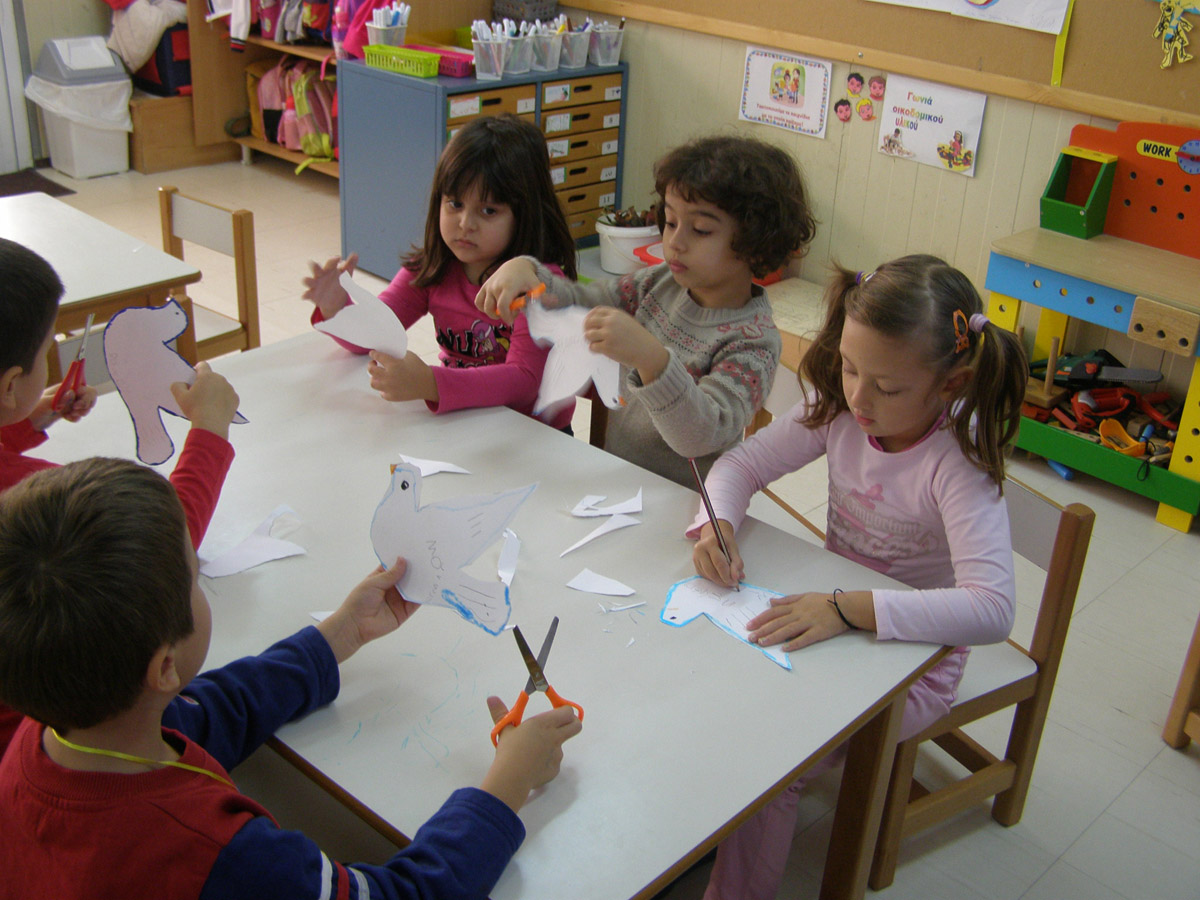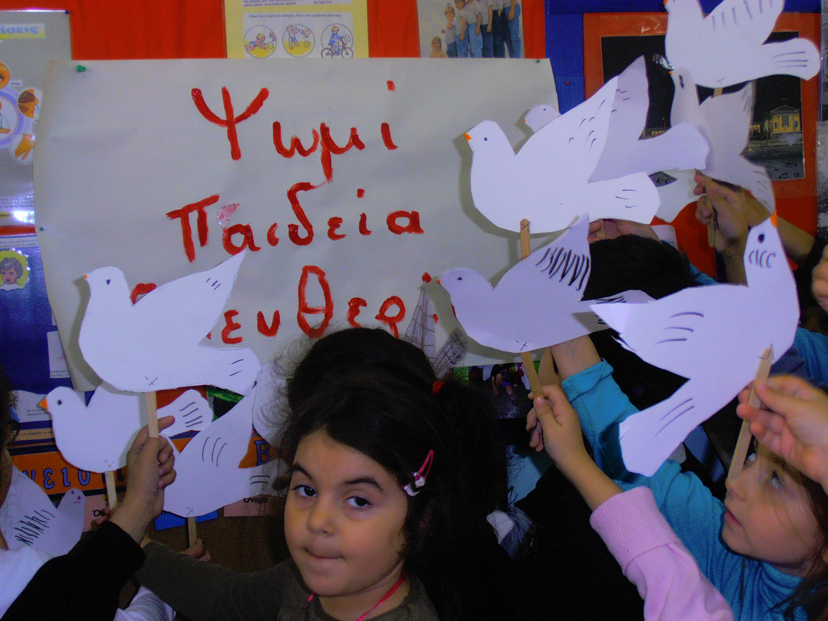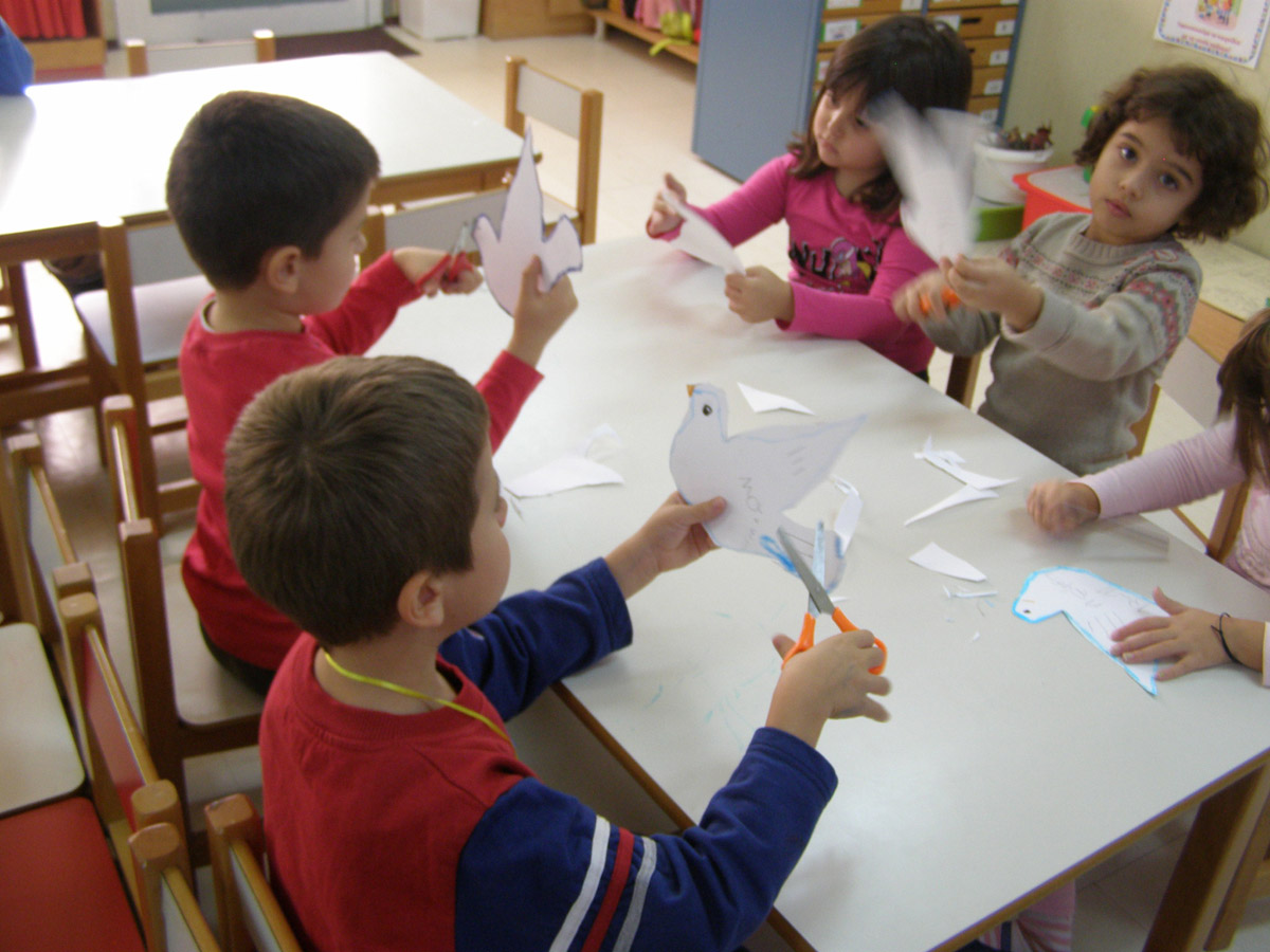 Σε κάποια τραπέζια δουλεύουμε ατομικά φτιάχνοντας το περιστέρι της ειρήνης