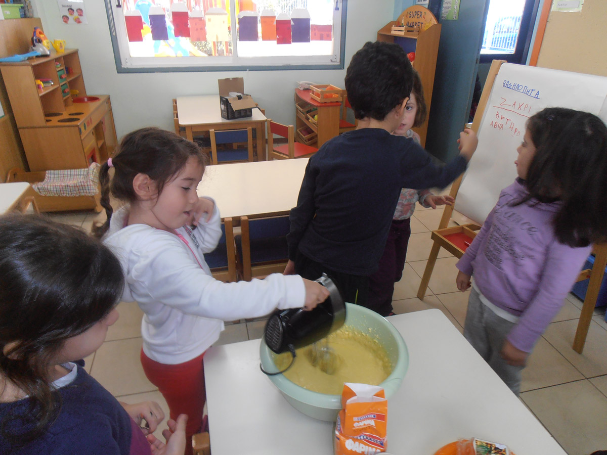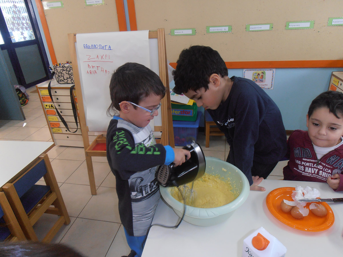 Όλοι θέλουμε να βοηθήσουμε ανακατεύοντας τα υλικά, αγόρια
