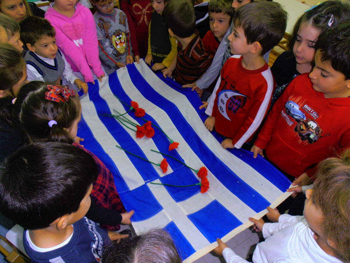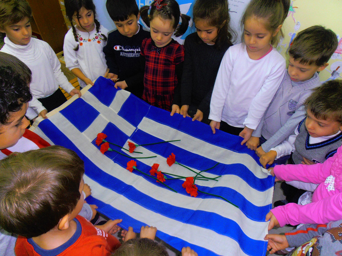 κι όλοι μαζί κρατούμε τη σημαία της πατρίδας μας όπως τα μεγάλα παιδιά