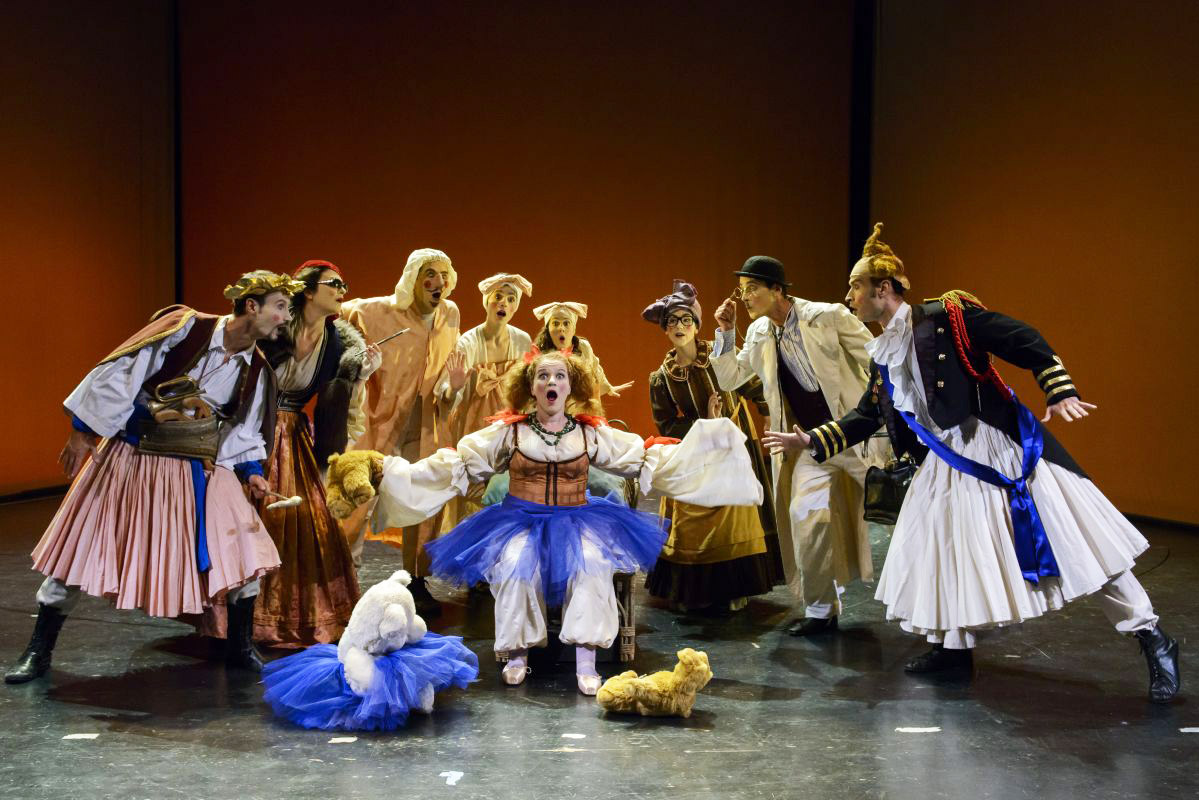 και θυμίζει στα παιδιά παιχνίδια ξεχασμένα. Οι μουσικοί, επί σκηνής μαζί με τους ηθοποιούς,