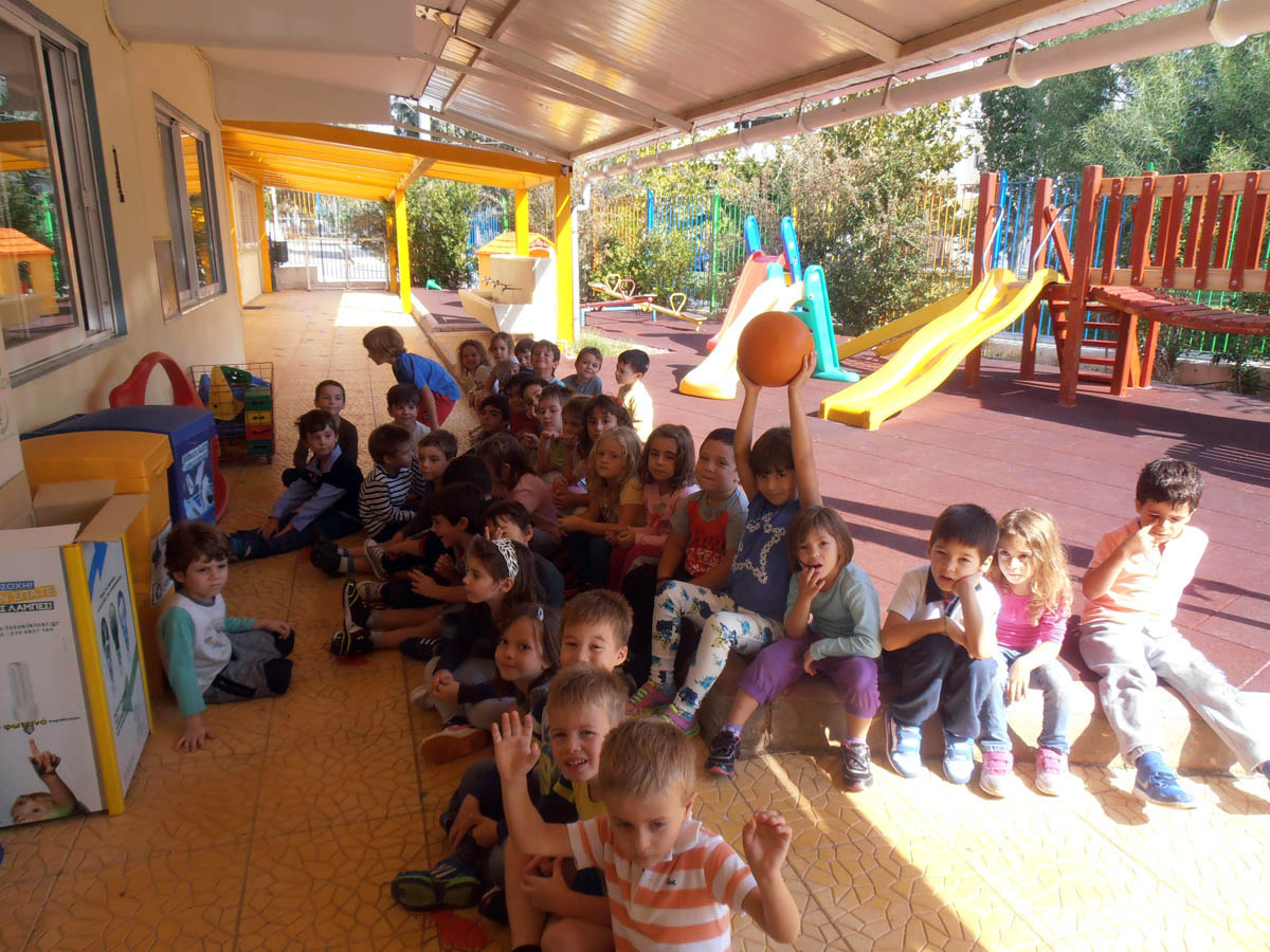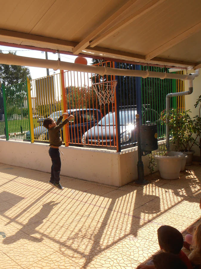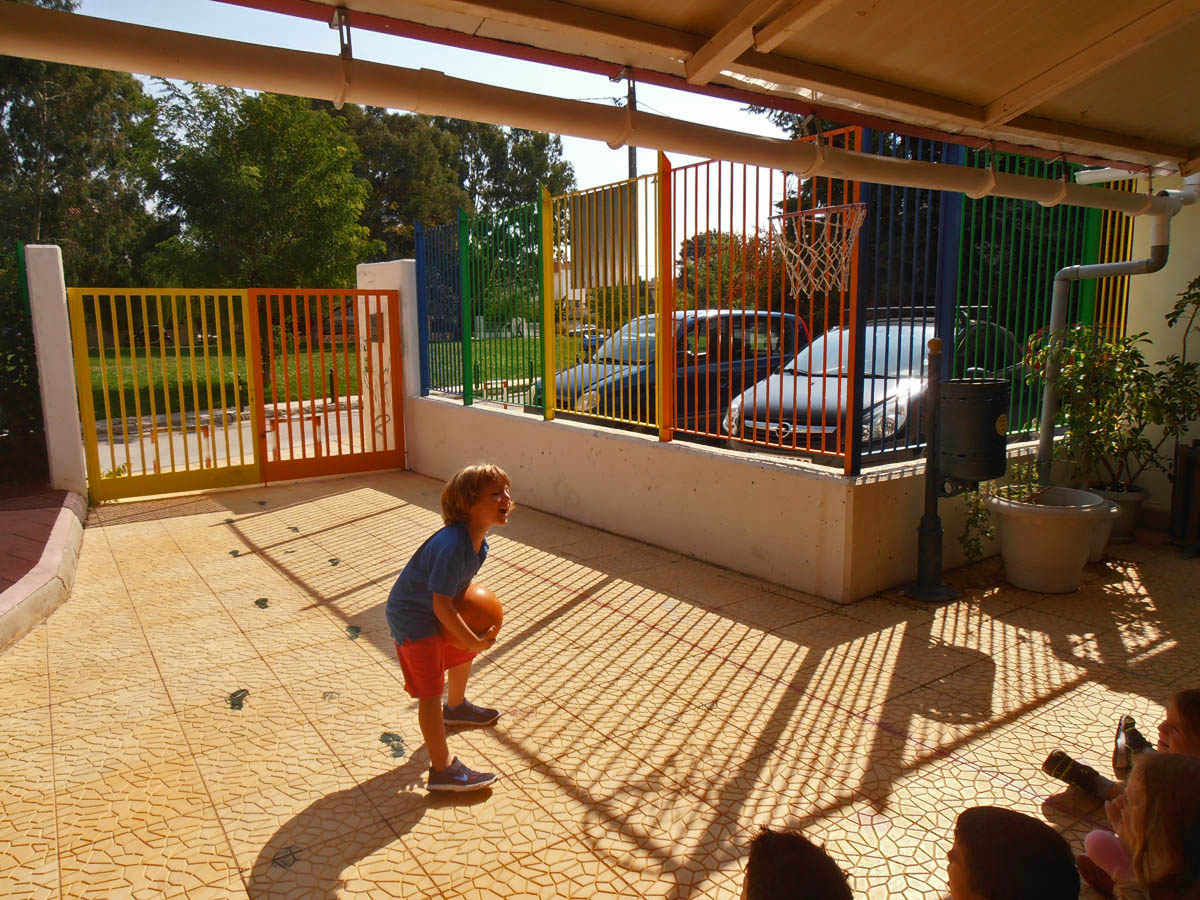 συμμετείχαμε σε παιχνίδια με την μπάλα βάζοντας καλάθι στην μπασκέτα.