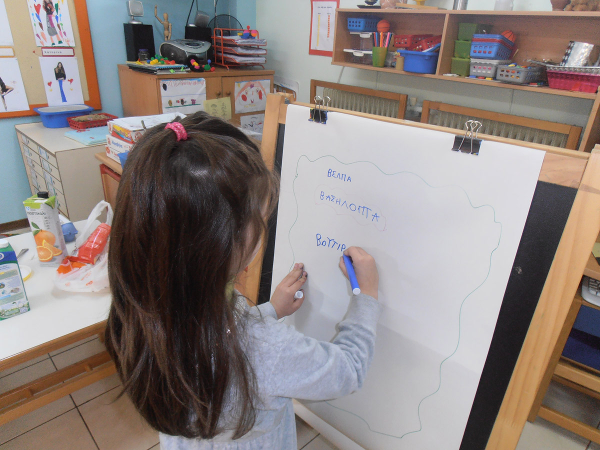 Όσο εκείνη ανακάτευε τα υλικά κάποιοι από εμάς τα σημειώναμε στον πίνακα.