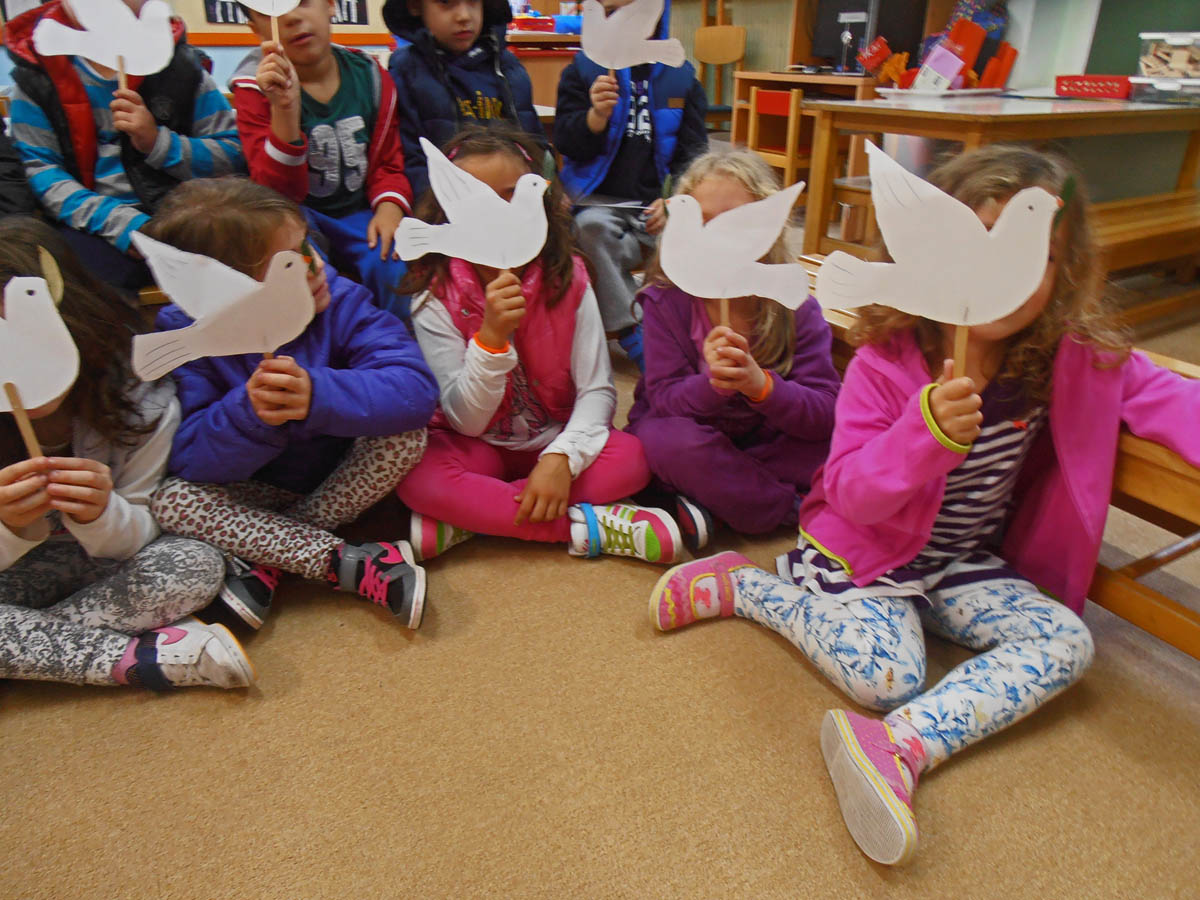φυλλαράκια από την ελιά και να ολοκληρώσουμε το περιστέρι της Ειρήνης.