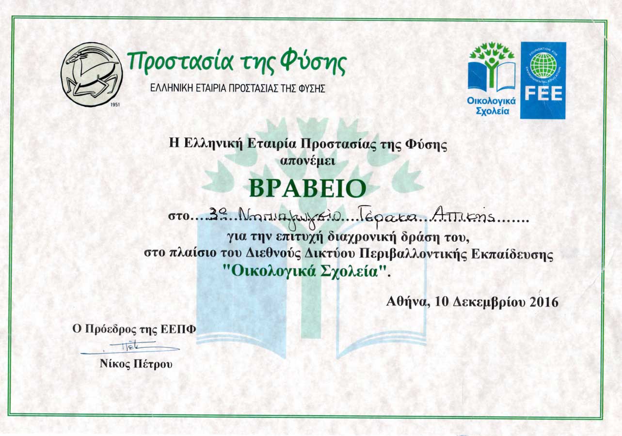 Tο σχολείο μας ανήκει στο δίκτυο των οικολογικών σχολείων και έχει βραβευθεί για τη δράση