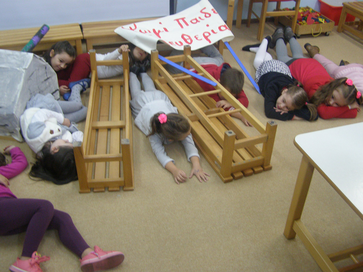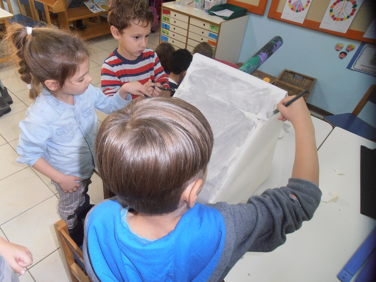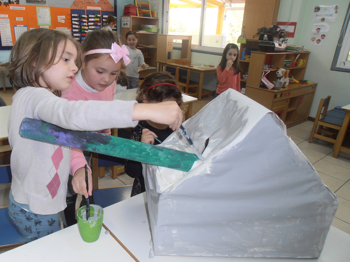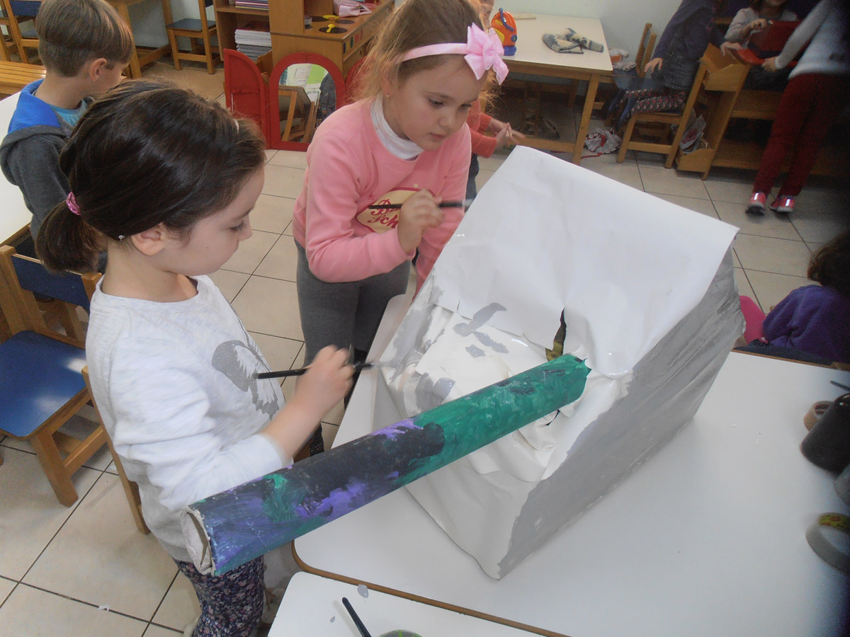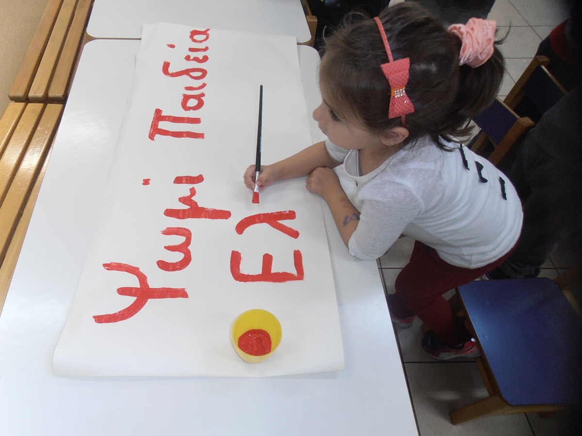 Εμείς τα παιδιά του ολοήμερου τμήματος ετοιμάζουμε τη γιορτή φτιάχνοντας το πανό