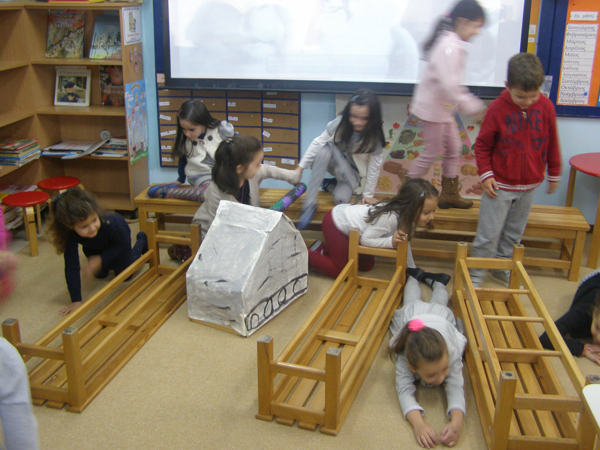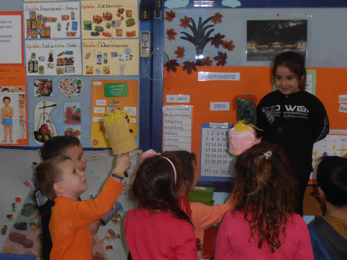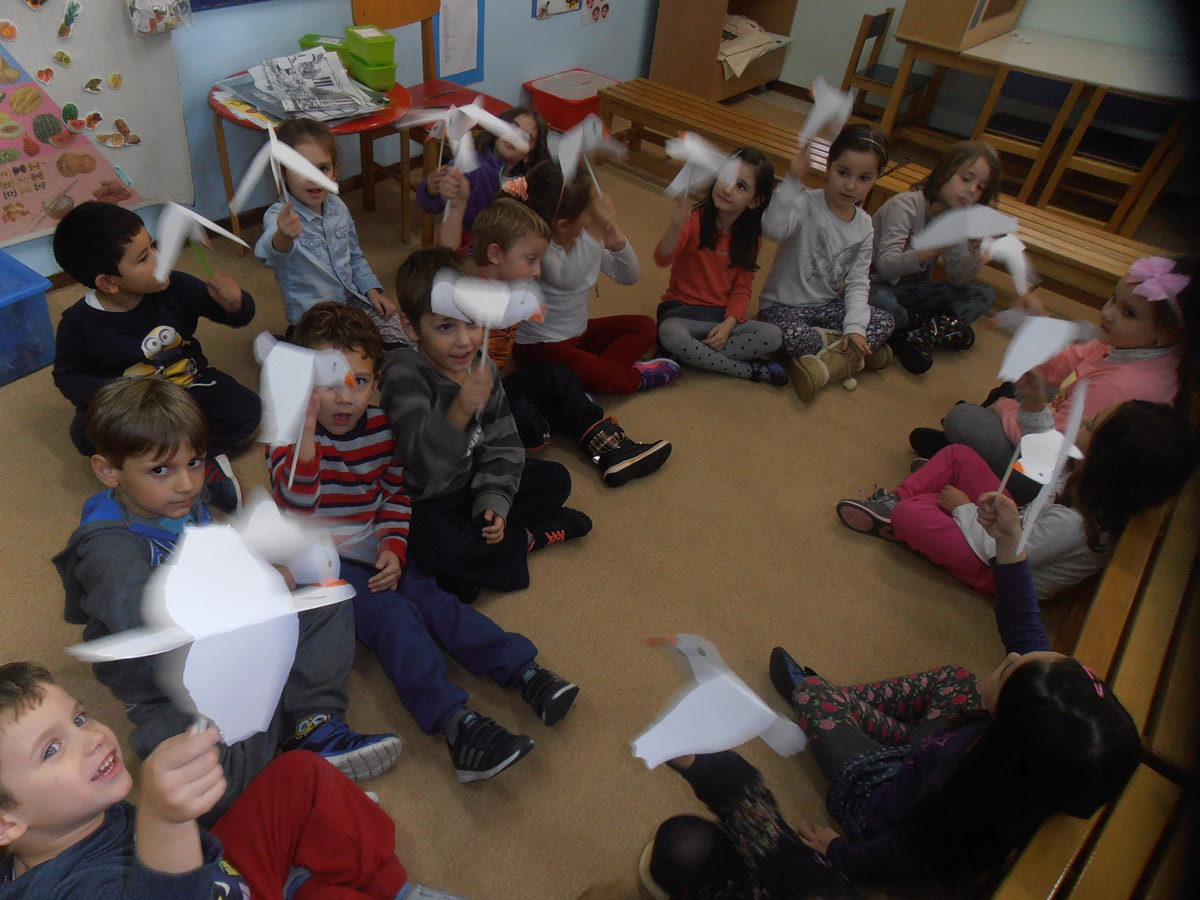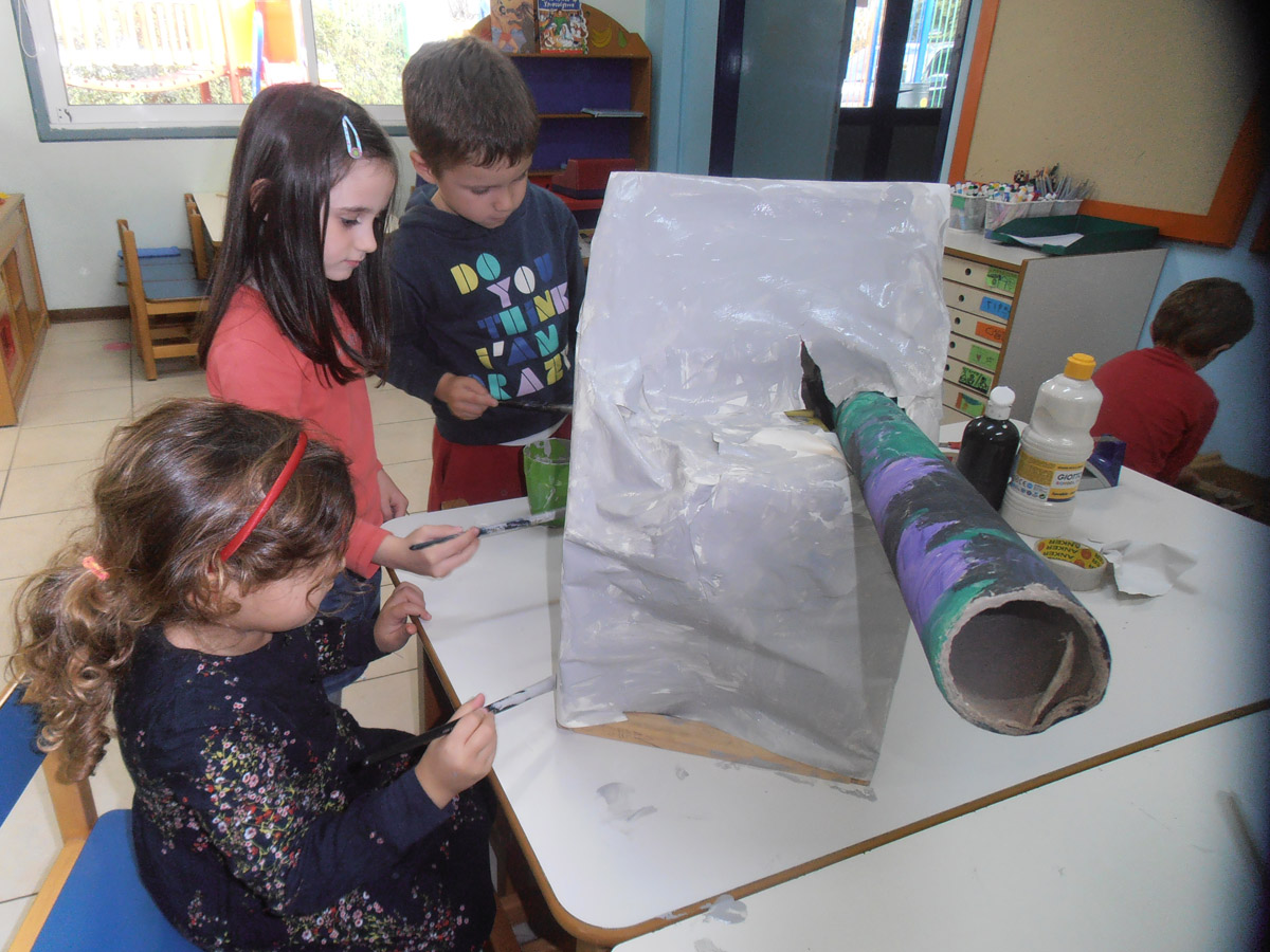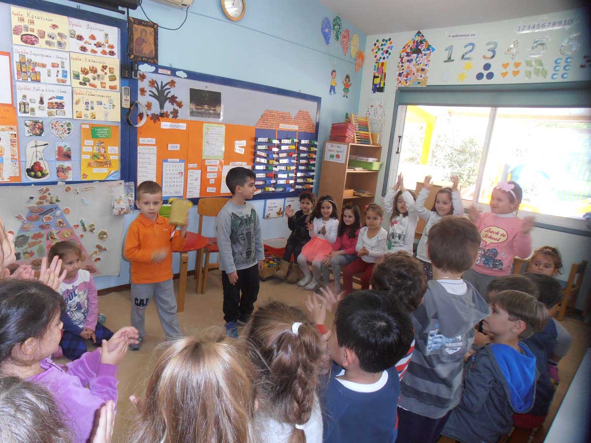 Εμείς τα παιδιά του ολοήμερου τμήματος ετοιμάζουμε τη γιορτή φτιάχνοντας το πανό