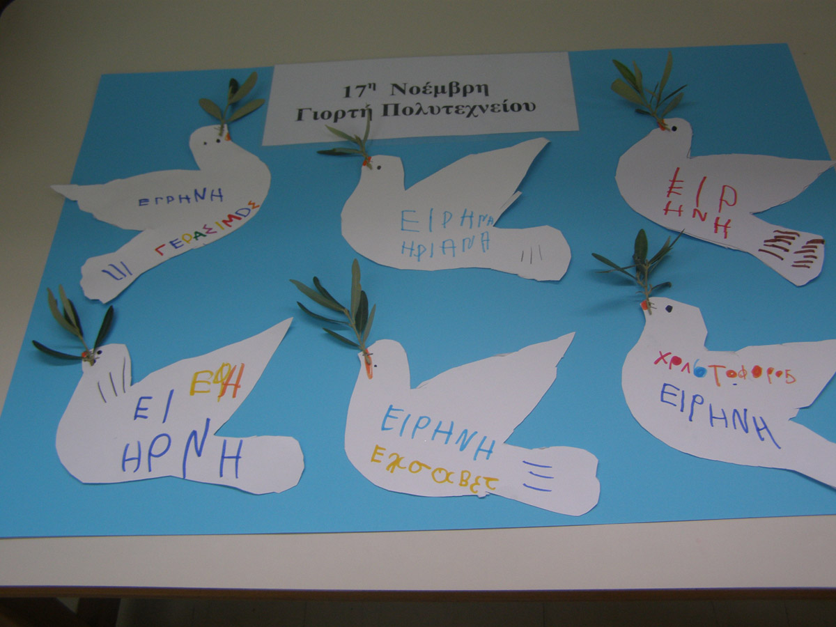 Καθώς πλησιάζει η γιορτή του Πολυτεχνείου ετοιμάζουμε τα περιστέρια της ειρήνης