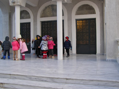 Το κρύο τσουχτερό μα τίποτε δεν μας σταματά και σε λίγο βρισκόμαστε μέσα στο ναό.