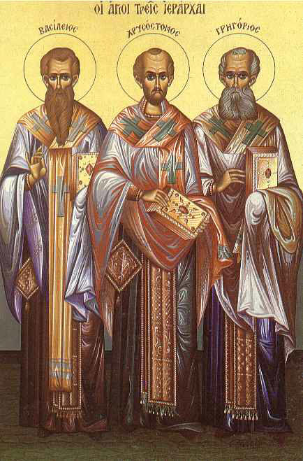 Το Μέγα Βασίλειο, το Γρηγόριο Θεολόγο (Ναζιανζηνό) και τον Ιωάννη το Χρυσόστομο.