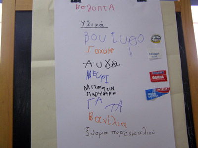 Συγκεντρώσαμε τα υλικά γράψαμε τη συνταγή και βάλαμε το φλουρί μέσα στο ταψί .