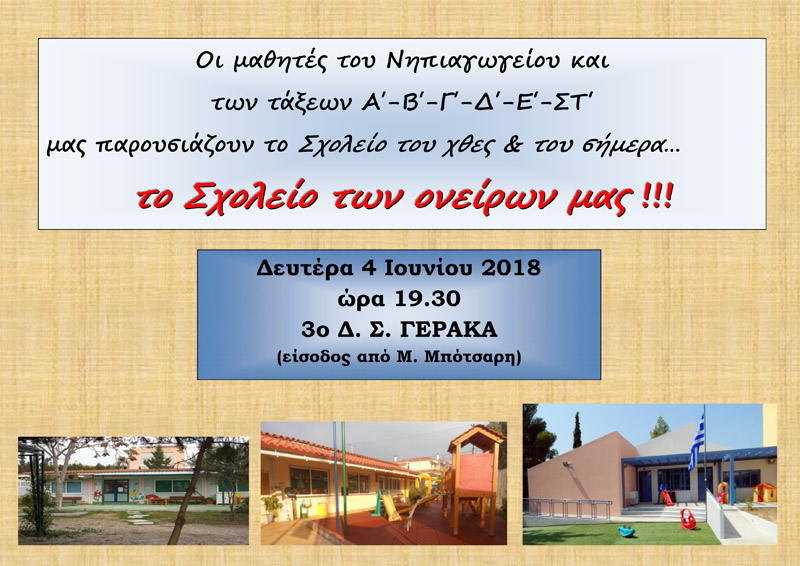 τους εκπαιδευτικούς και τη Διευθύντρια του 3ου Δημοτικού Σχολείου Γέρακα έγινε η γιορτή λήξης