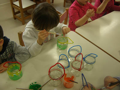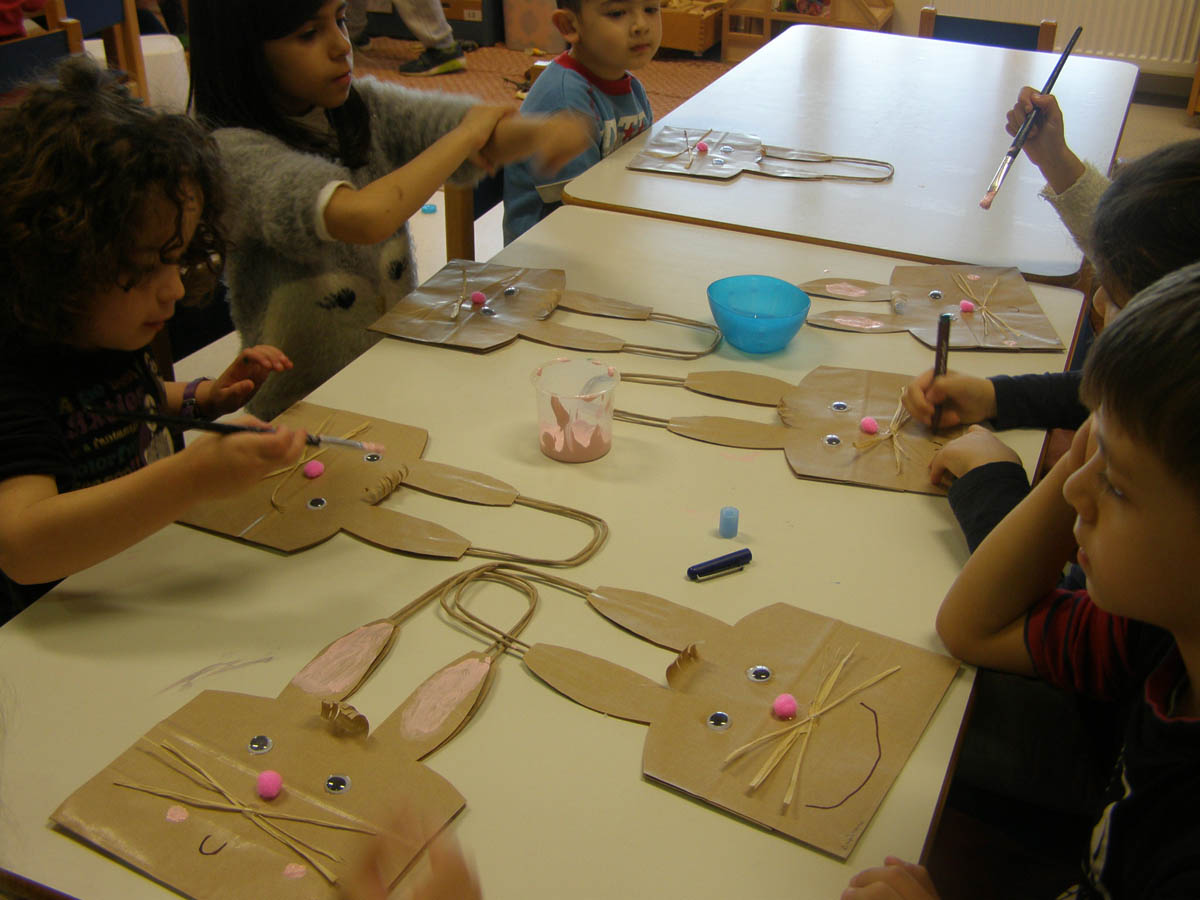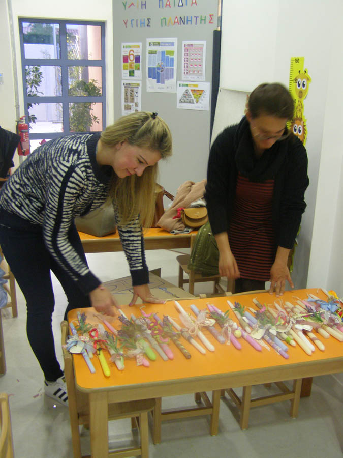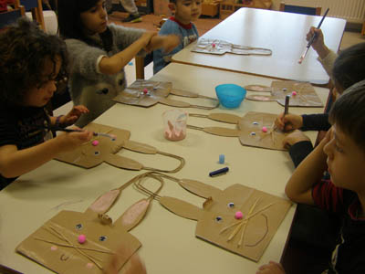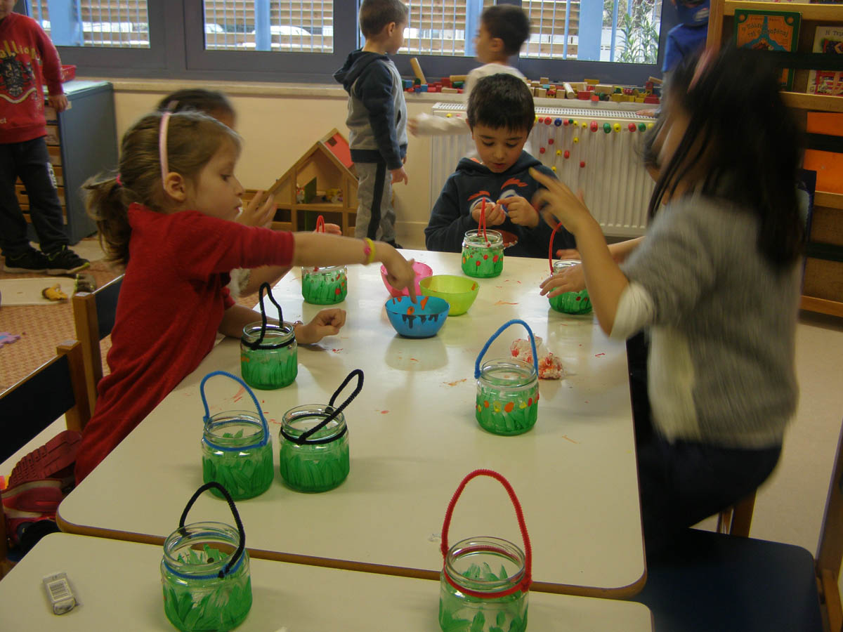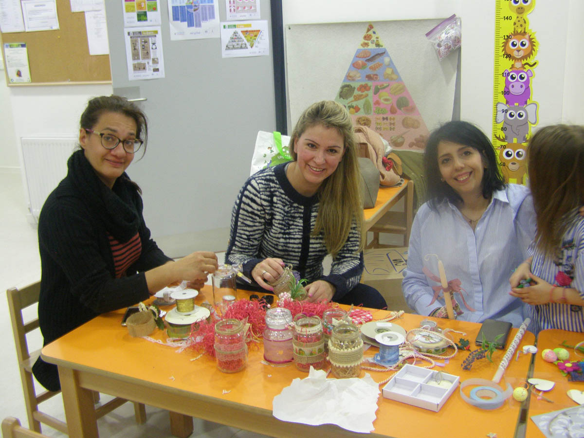 οι μανούλες μας ετοιμάζουν πράγματα για το καθιερωμένο πασχαλινό παζάρι του Νηπιαγωγείου μας
