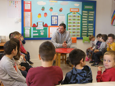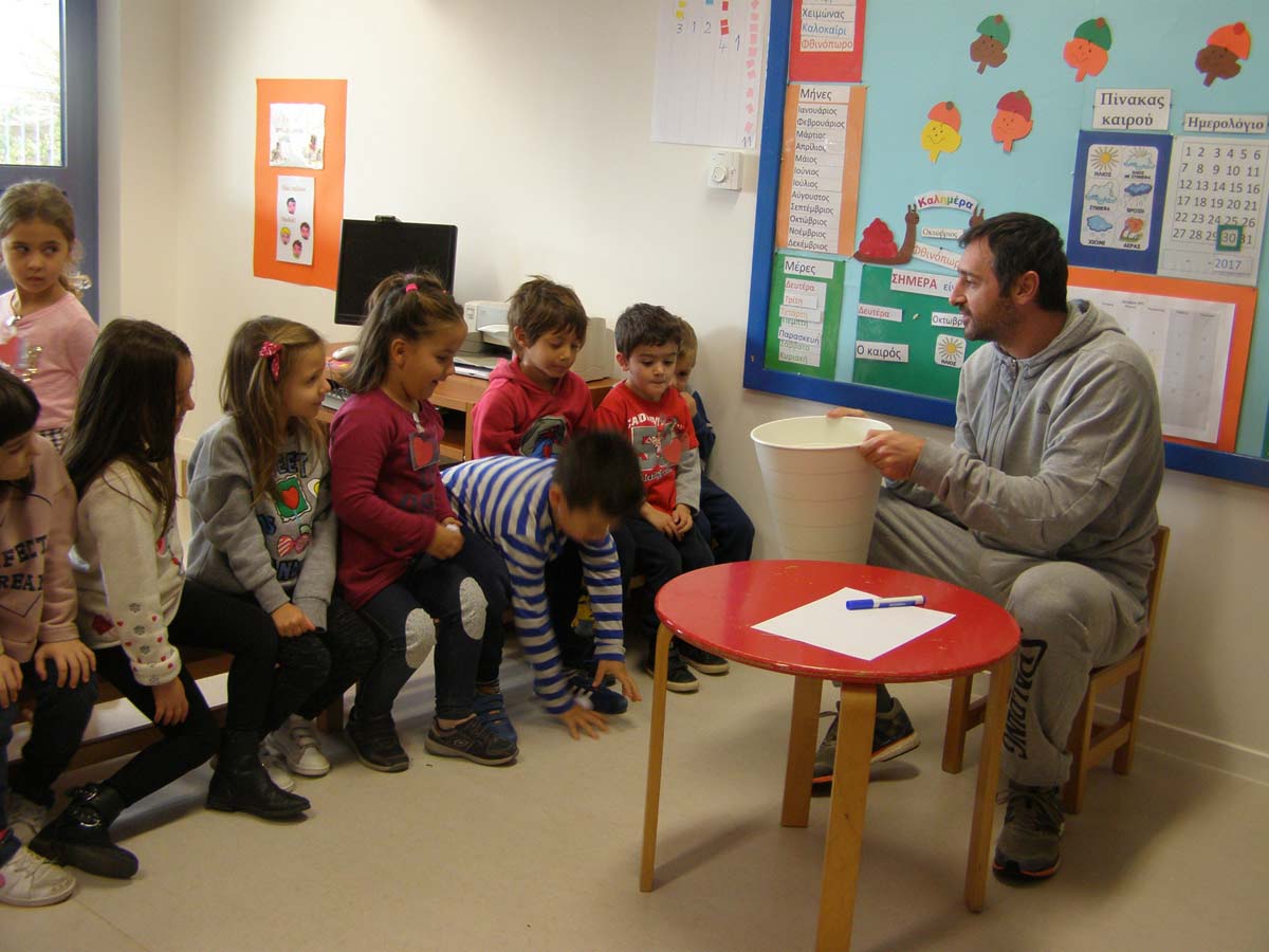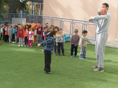 Στην τάξη τον ακούμε προσεκτικά και βάζουμε τα πρώτα μας καλάθια.