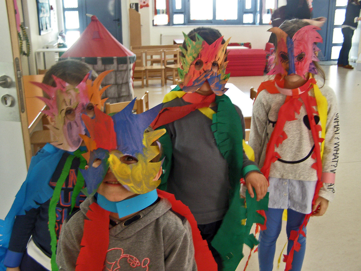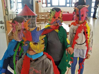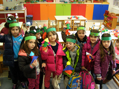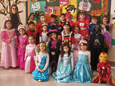 Ετοιμαζόμαστε για το αποκριάτικο πάρτι φορώντας τις πολύχρωμες στολές μας