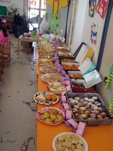 Οι γονείς μας φέρνουν νόστιμα φαγητά και γλυκά και τα απολαμβάνουμε μετά το ξέφρενο γλέντι.