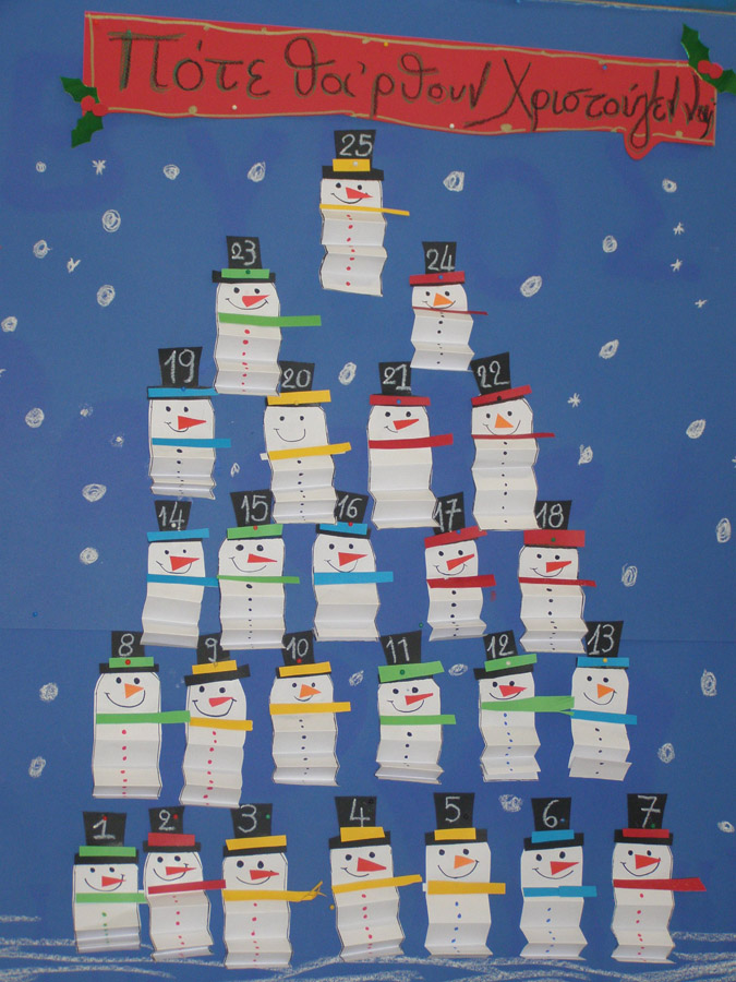 μετράμε αντίστροφα με το ημερολόγιο με τα χιονανθρωπάκια.