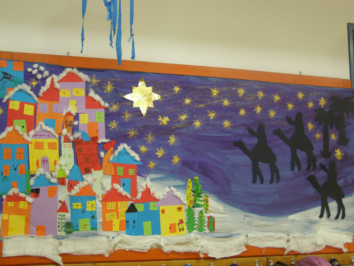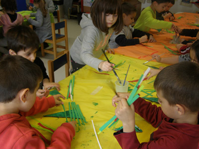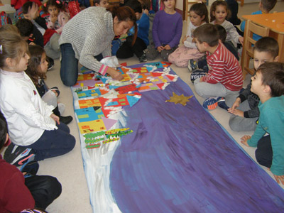 άλλη ετοιμάζουμε μια μεγάλη ομαδική εργασία για να στολίσουμε το σχολείο μας,