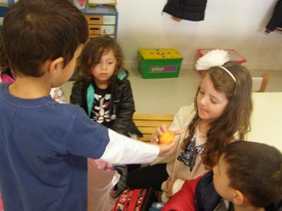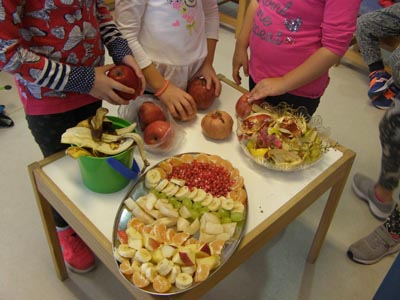 τρώμε μανταρίνια που μας κέρασε ο φίλος μας από το τμήμα 1,
