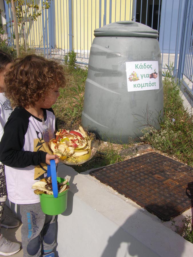 ρίχνουμε τις φλούδες από τα φρούτα που καθαρίσαμε στον κομποστοποιητή μας,