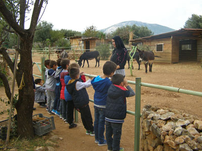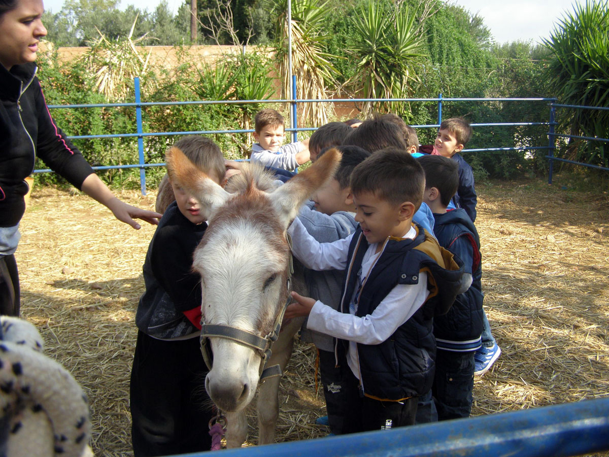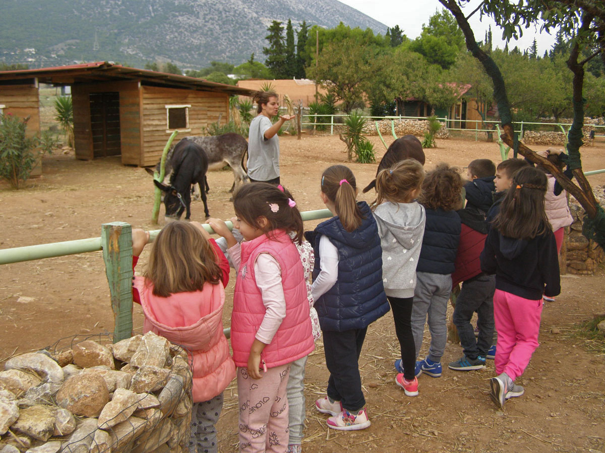 και φτάνουμε στο Κορωπί σε ένα μεγάλο κτήμα που φιλοξενεί γαϊδουράκια.