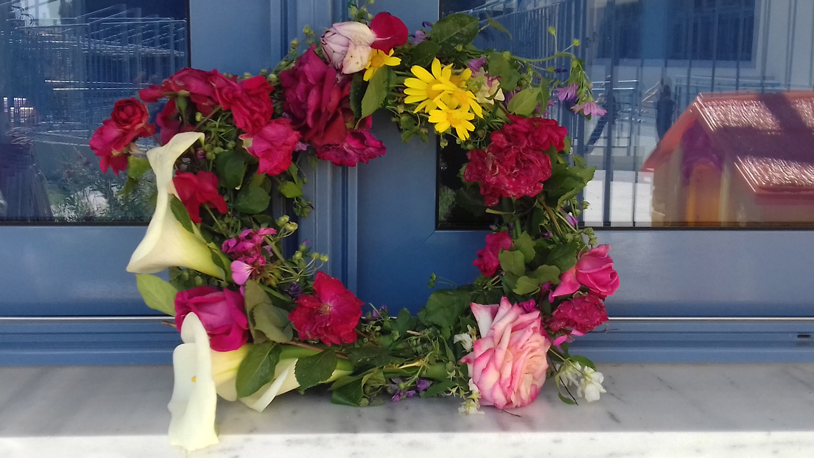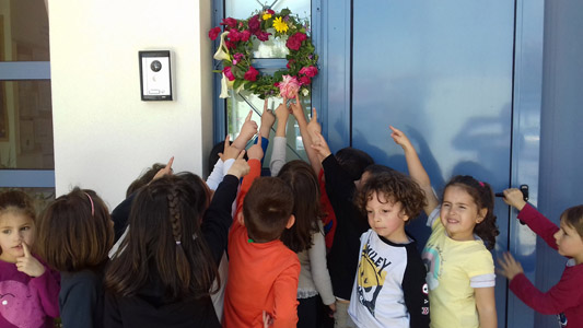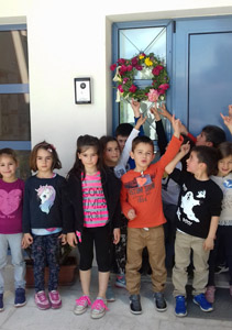 Δεν μπορούσαμε να μην στολίσουμε κι αυτή τη χρονιά το όμορφο σχολείο μας με ένα μαγιάτικο στεφάνι,