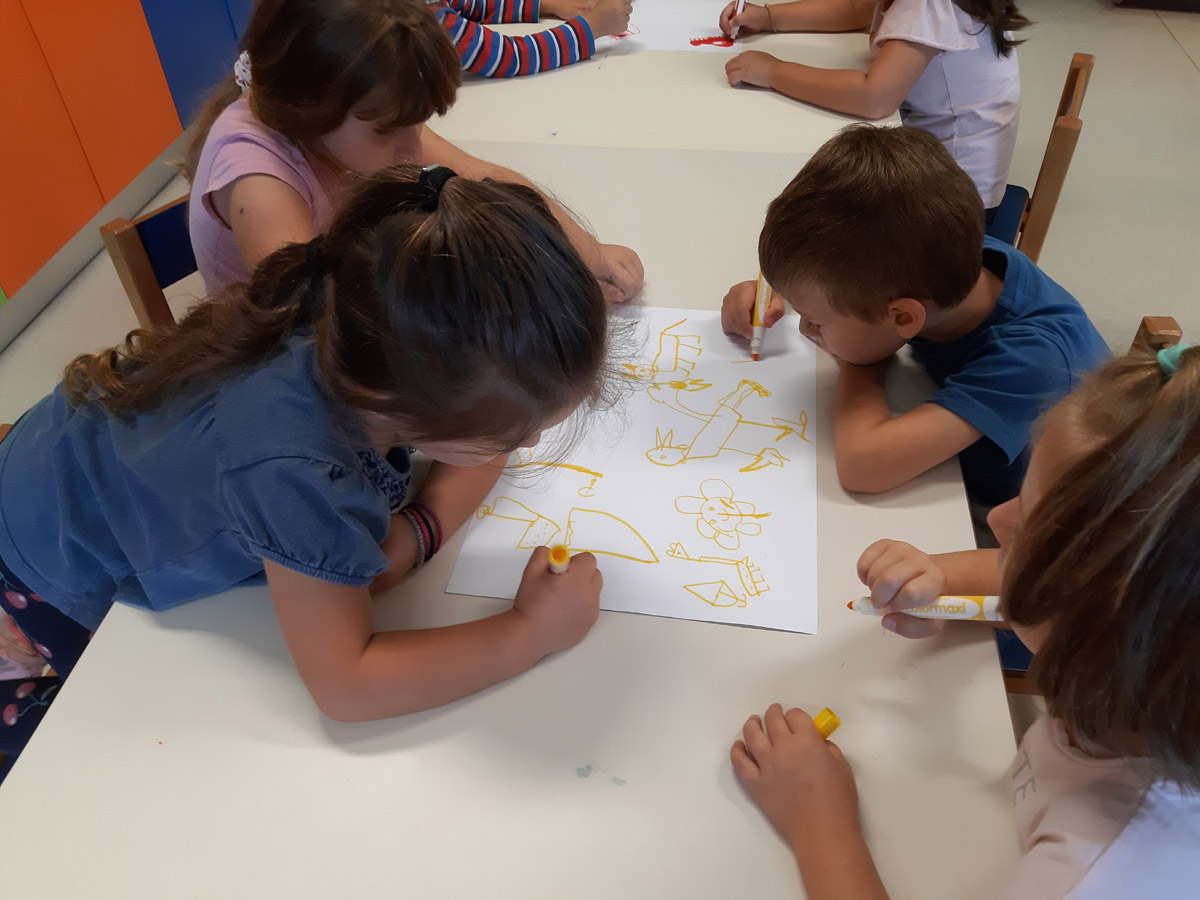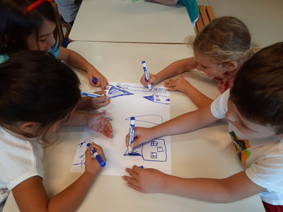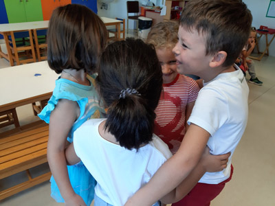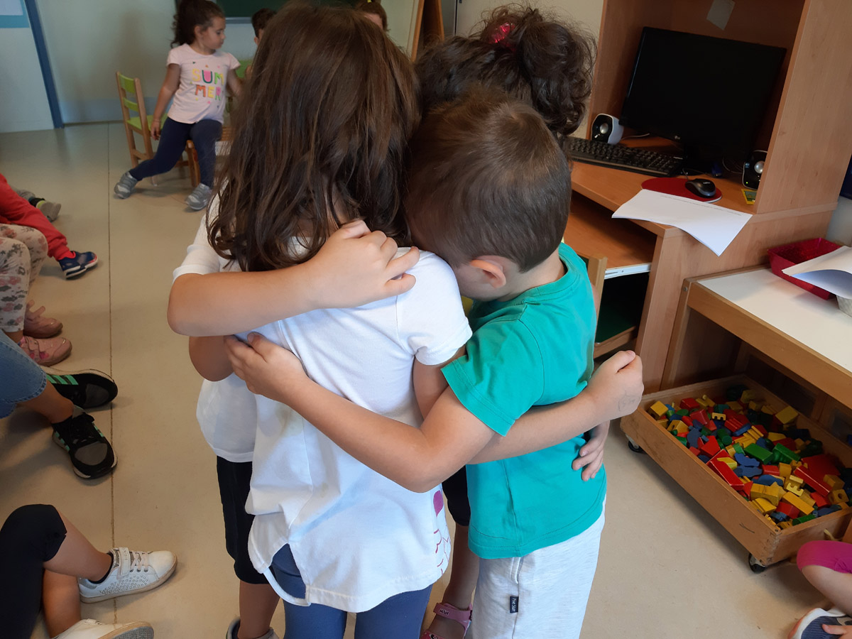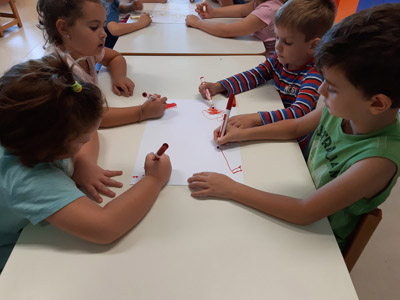 παίζουμε ομαδικά παιχνίδια και κάνουμε ομάδες για να δουλεύουμε καλύτερα,