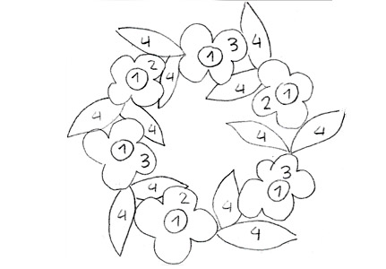 Ζωγραφίστε το παρακάτω στεφάνι με τα χρώματα που πρέπει: