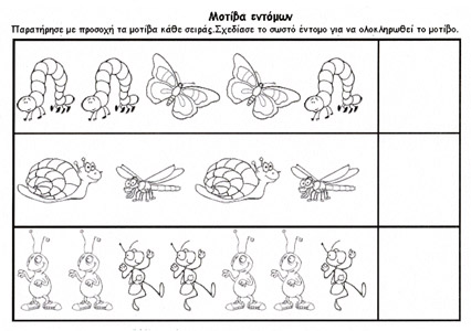Συμπληρώστε λοιπόν τα παρακάτω μοτίβα με τα έντομα που λείπουν.