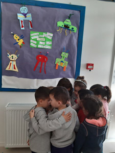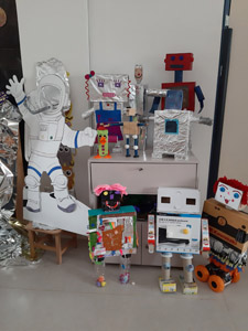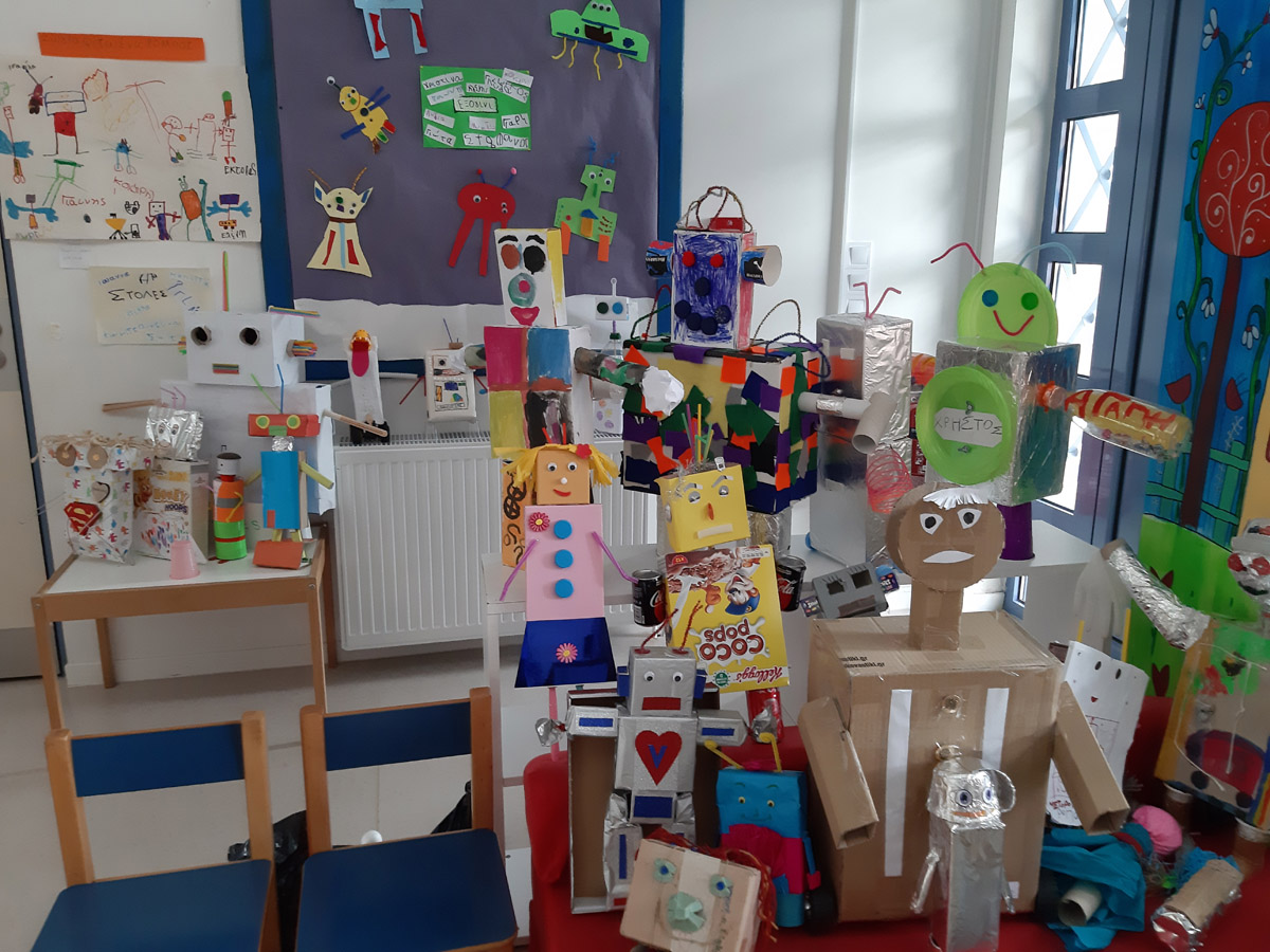 και συνεχίζεται στο σπίτι με τη κατασκευή ρομπότ σε συνεργασία με τους γονείς μας!!!