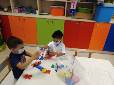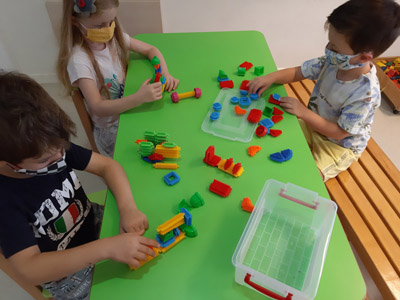 παίζοντας με κατασκευές, πλάθοντας πλαστελίνη,