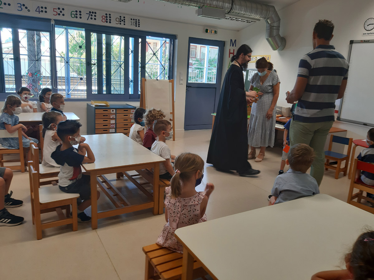 ενώ στη συνέχεια ο ιερέας έρχεται στο Νηπιαγωγείο μας για να μας ευχηθεί κι εμάς