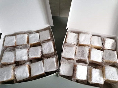 Τρεις έτοιμες πίτες λόγω συνθηκών με τυλιγμένα κομμάτια σε ατομικά σακουλάκια