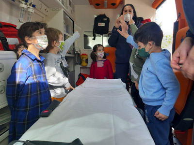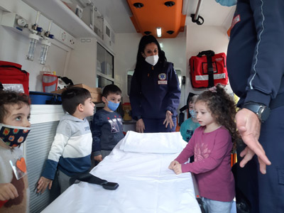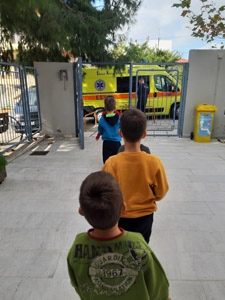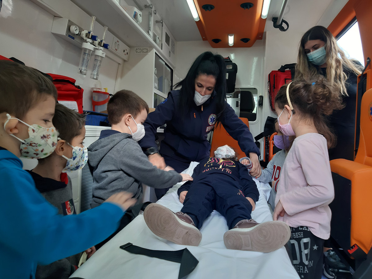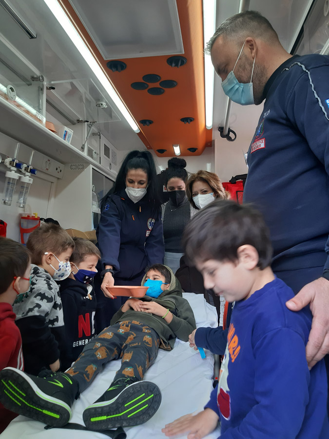 Χωριζόμαστε σε ομάδες και οι υπεύθυνοι του ΕΚΑΒ μας εξηγούν