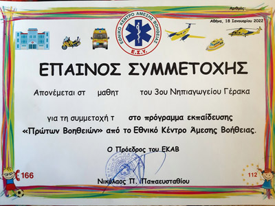 αφού μας έδωσαν τον Έπαινο Συμμετοχής μας μαζί με μια κατασκευή ενός ασθενοφόρου