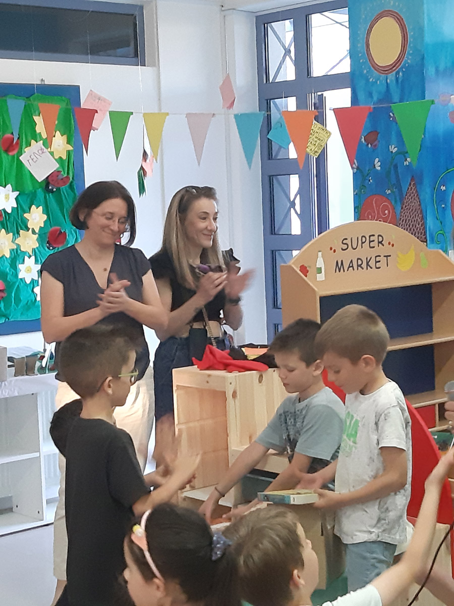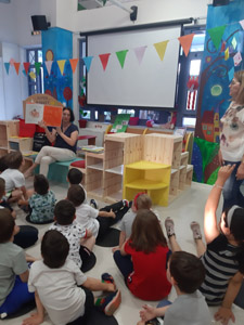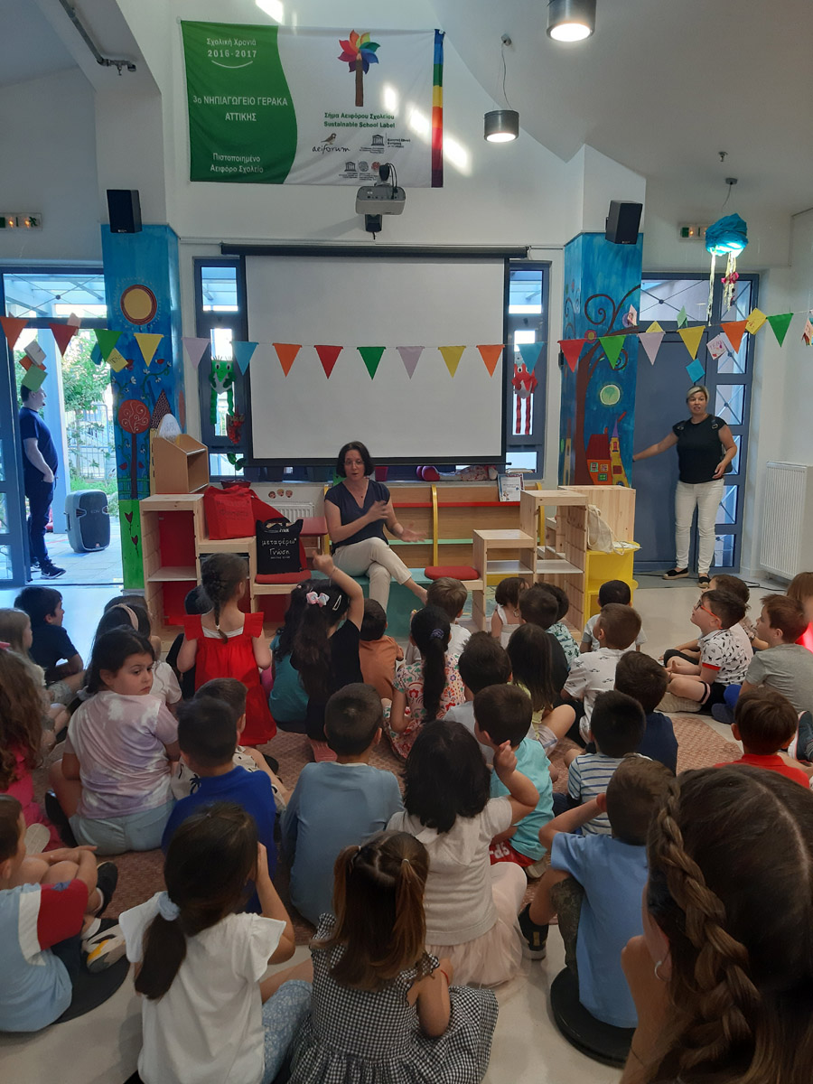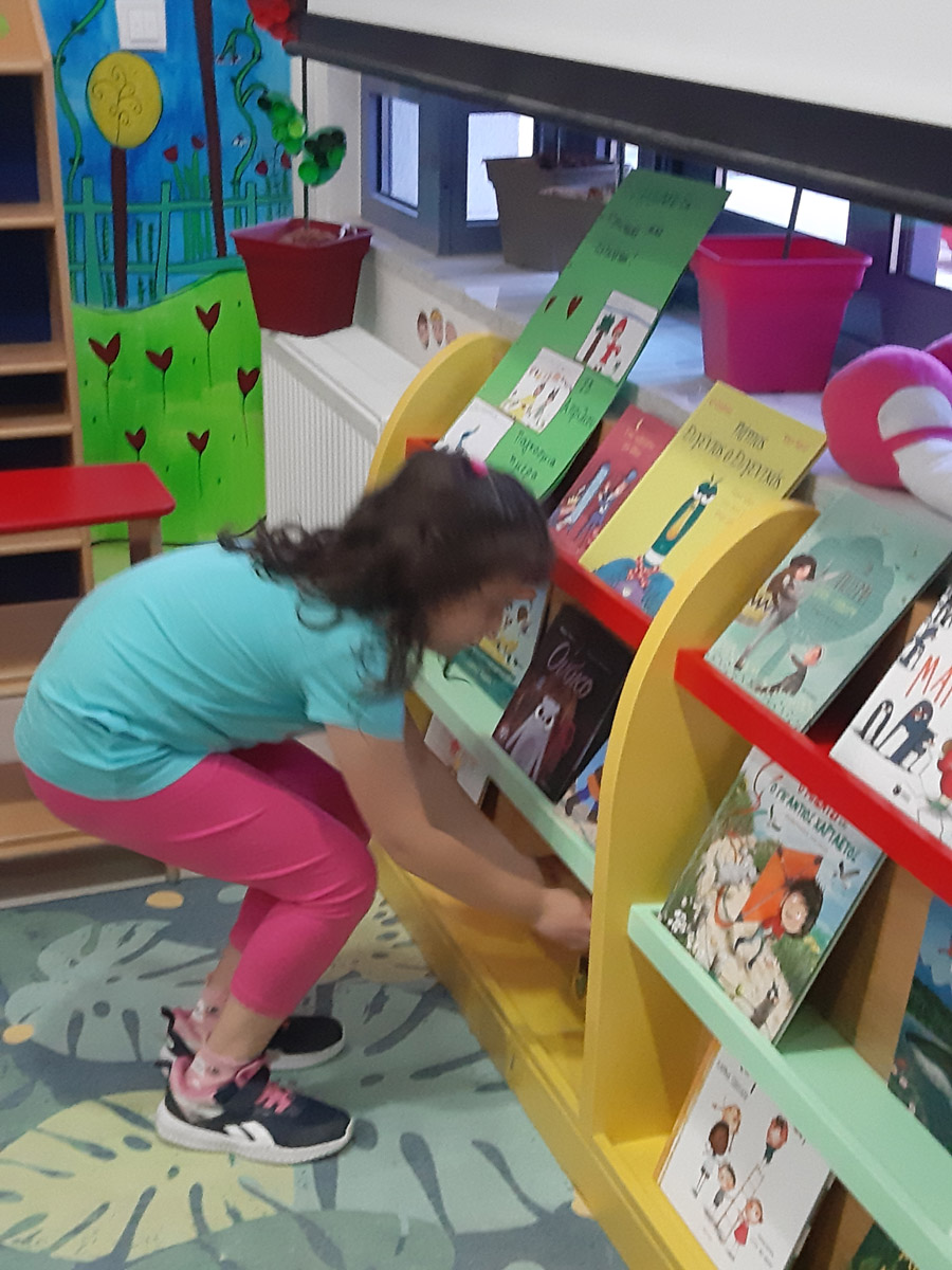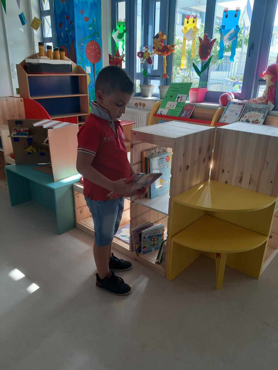 η δημιουργία της Δανειστικής Βιβλιοθήκης στο χώρο πολλαπλών χρήσεων του Νηπιαγωγείου.