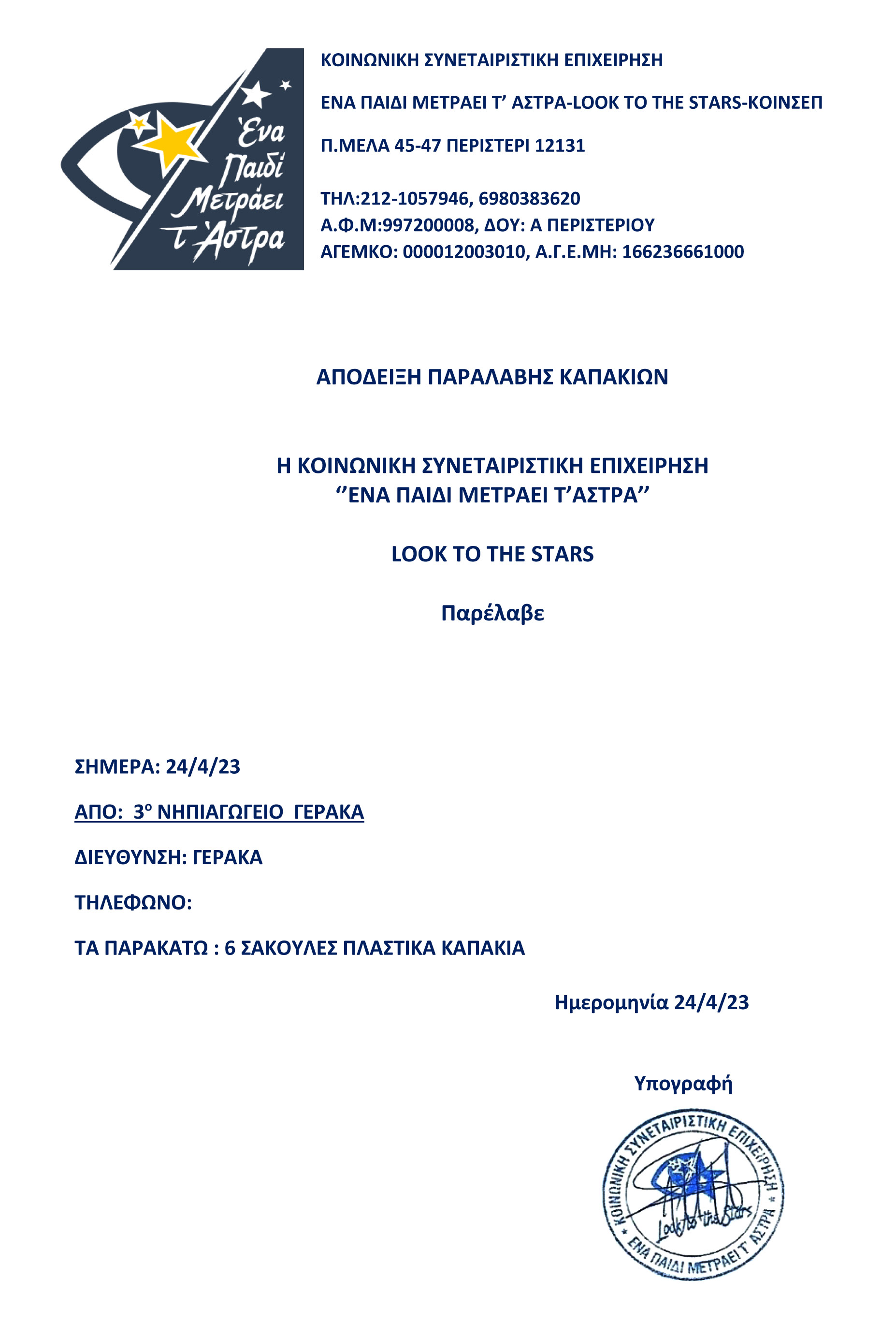 Δίνουμε και φέτος τα καπάκια που μαζέψαμε στο "Ένα παιδί μετράει τ' άστρα"