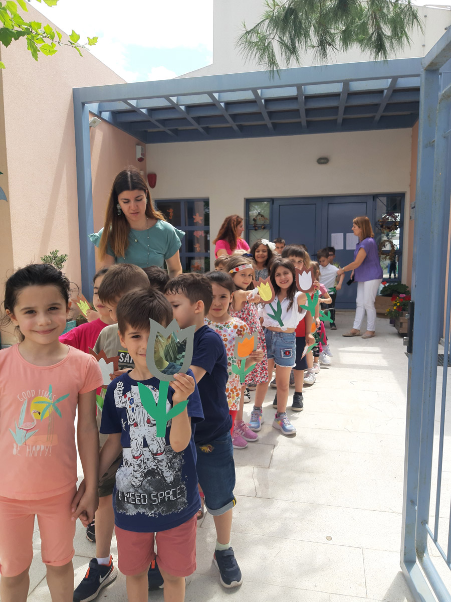 αφού ετοίμασαν όμορφα λουλούδια που θα προσφέρουν στις δασκάλες