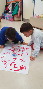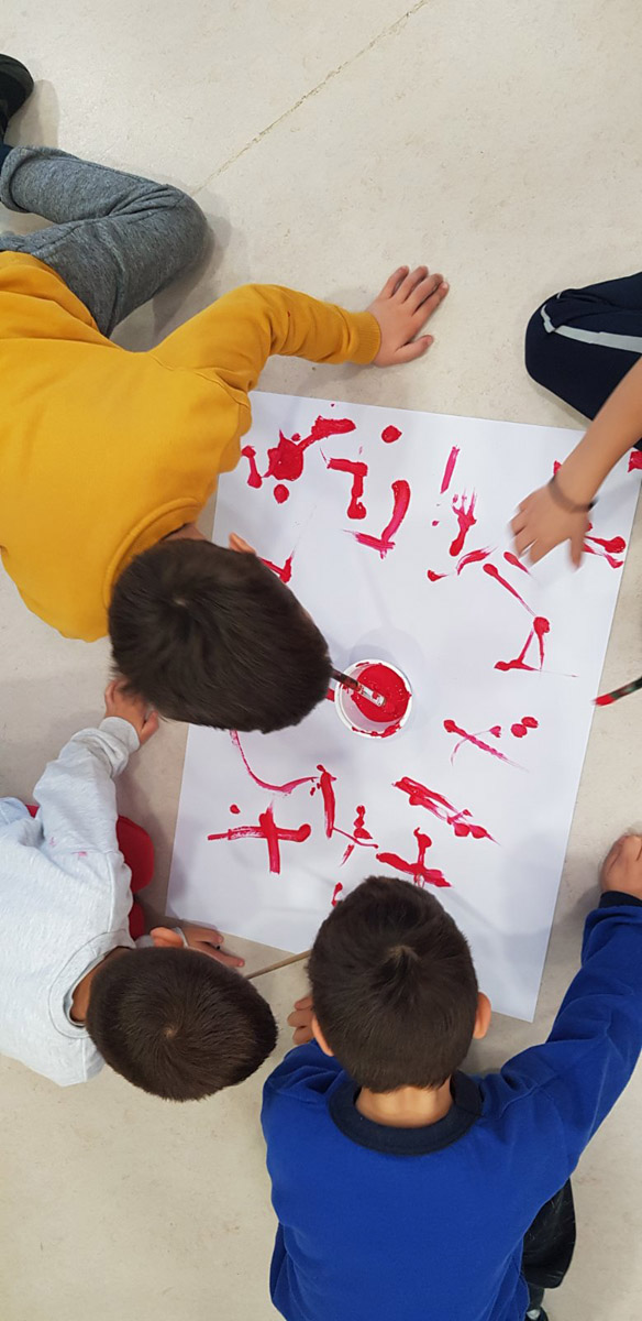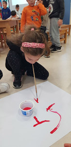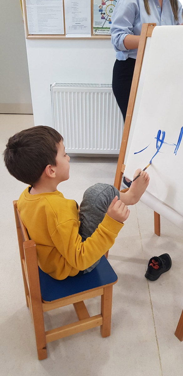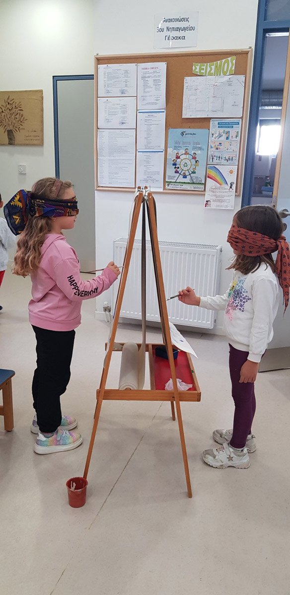 Τα παιδιά δοκίμασαν να ζωγραφίσουν με το πόδι,το στόμα ή τα μάτια κλειστά.