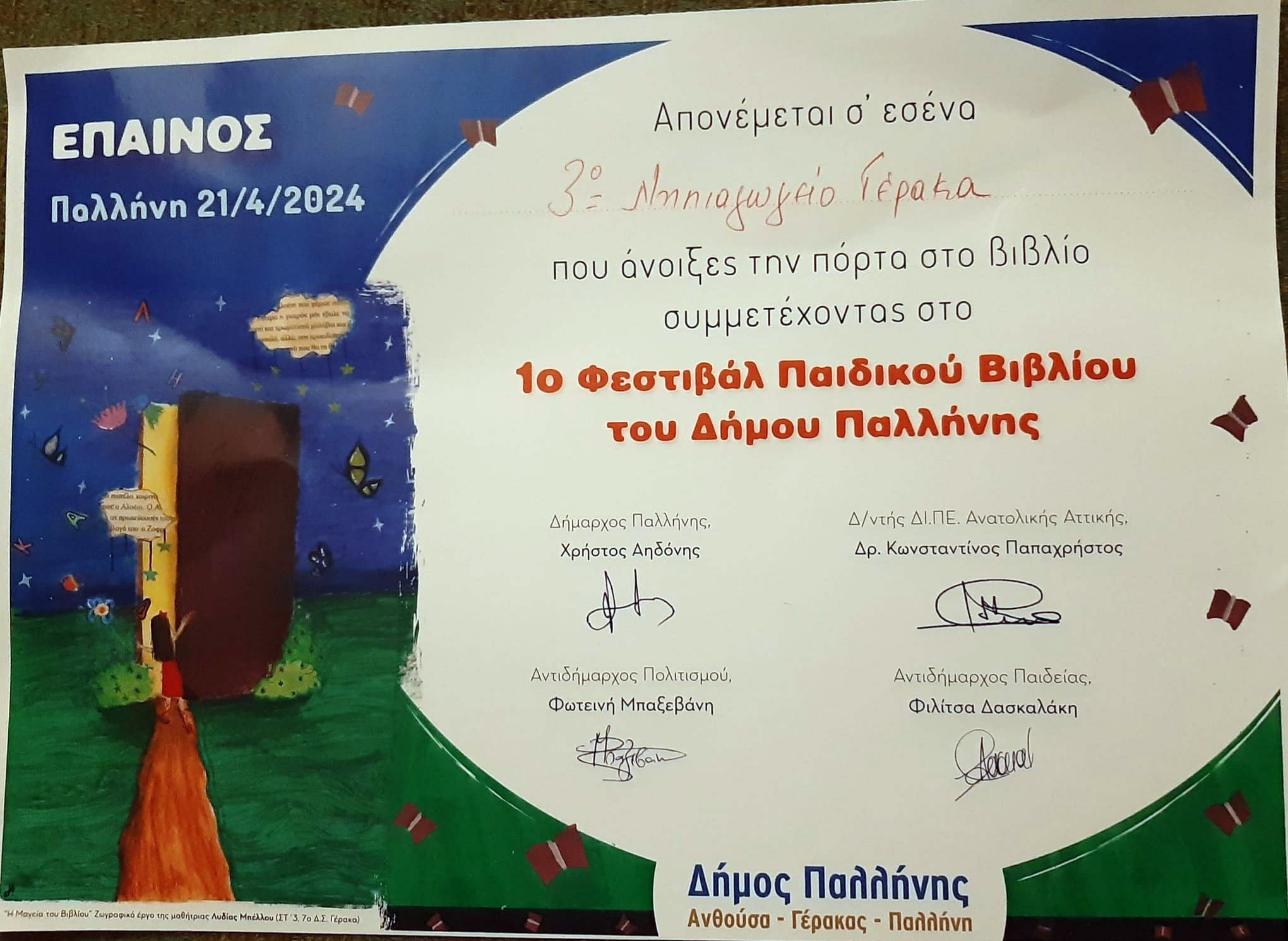 Στο πλαίσιο του 1ου Φεστιβάλ Παιδικού Βιβλίου του Δήμου Παλλήνης