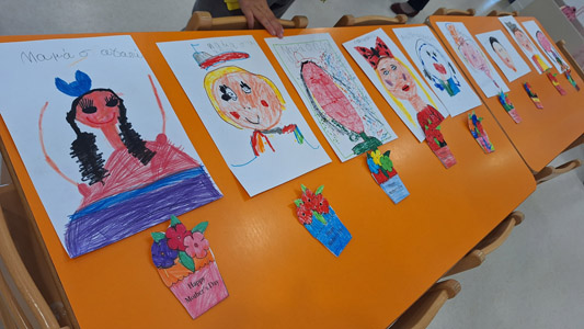 Με τη δημιουργία πορτρέτων της μαμάς τους, γλαστρούλες με λουλούδια από την κ.Γεωργία των Αγγλικών