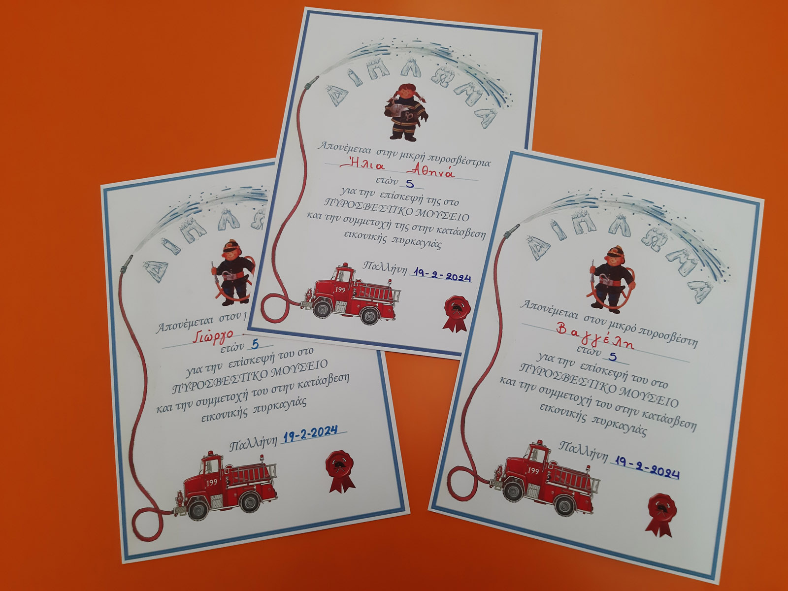 σε εικονική κατάσβεση πυρκαγιάς και διπλώματα για τους μικρούς πυροσβέστες!