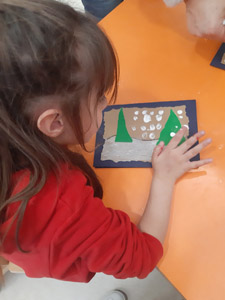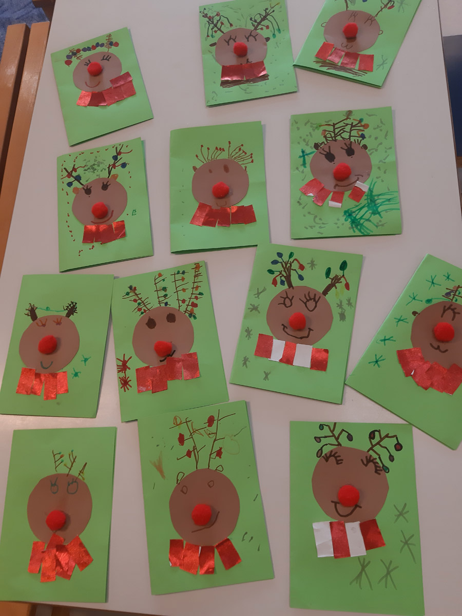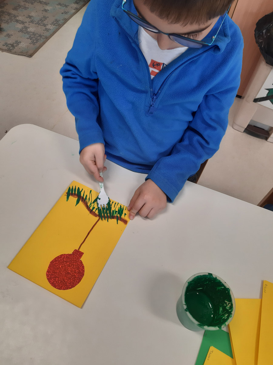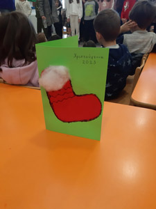 Η κ.Ντίνα, που πήρε σύνταξη, ήρθε να μας βοηθήσει να φτιάξουμε τις χριστουγεννιάτικες κάρτες μας.