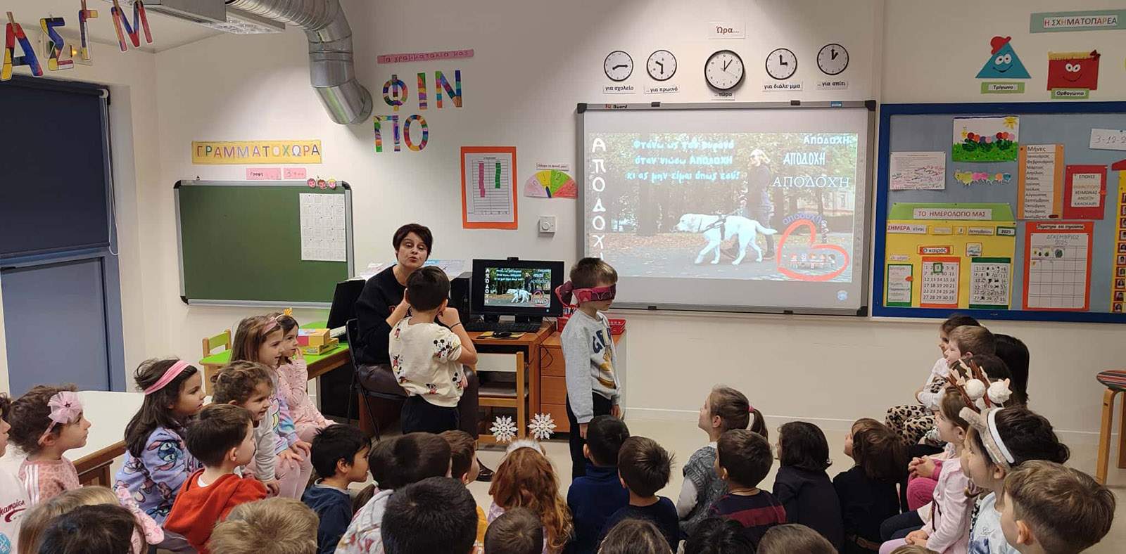 Τα παιδιά αφού ενημερώθηκαν από την κυρία Αλεξάνδρα για την αναπηρία